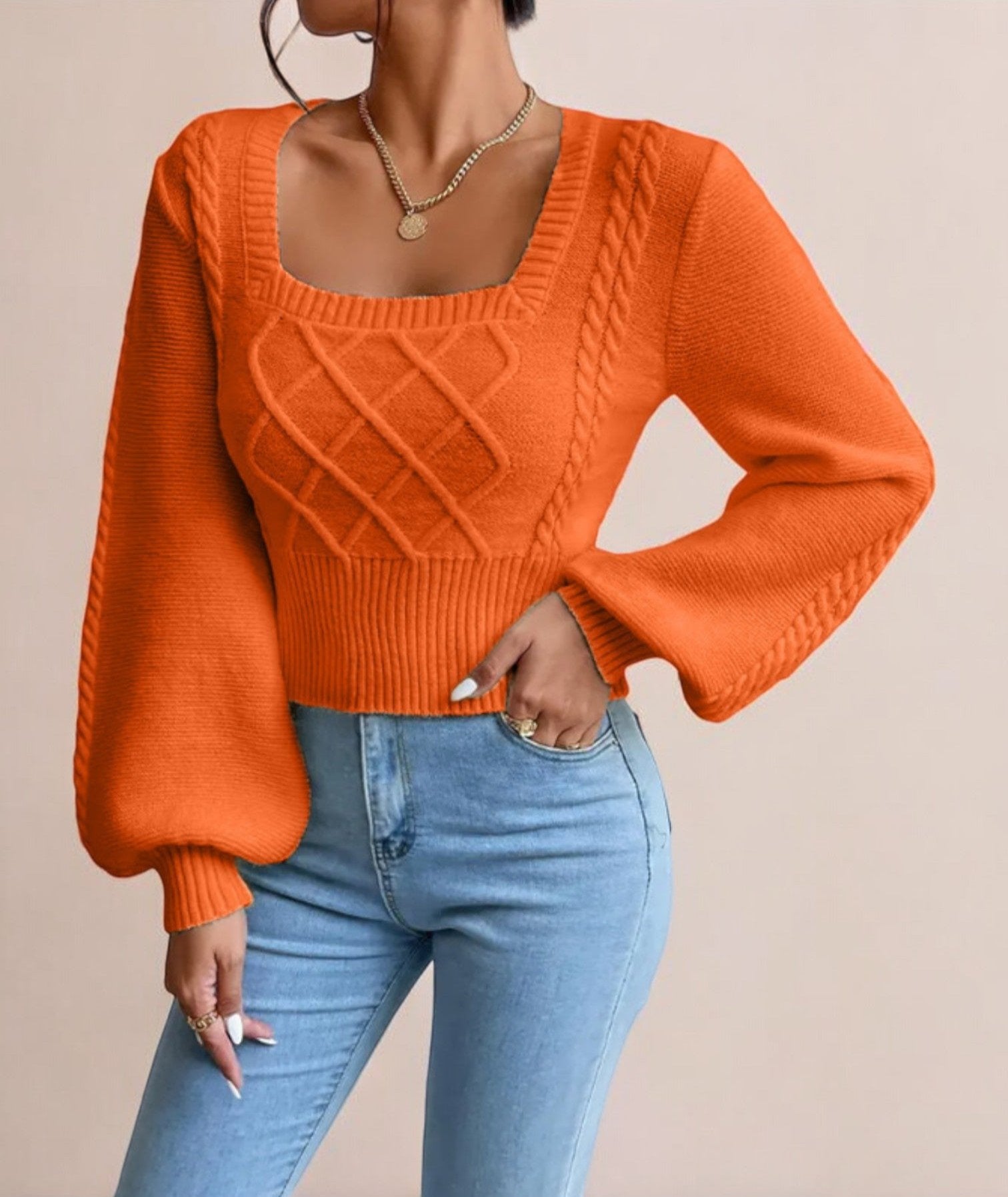 Der aprikosenfarbene Pullover mit Quadratkragen kombiniert zeitlose Eleganz mit modernem Stil und ist die perfekte Ergänzung für Ihre Garderobe. Verleihen Sie Ihrem Alltagslook mit diesem vielseitigen Stück, das Sie den ganzen Tag über bequem und schick hält, einen Hauch von Eleganz.