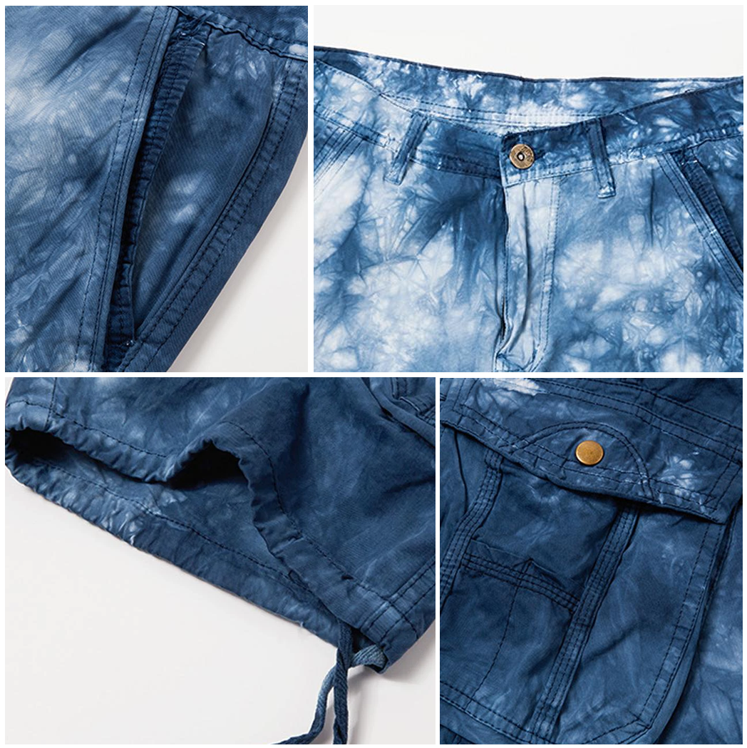Erlebe die Abenteuerlust der Blau gemusterten Cargo-Shorts mit Gürtel - Leo und bringe stilvolle Funktionalität in deine Garderobe. Diese modischen Shorts sind die perfekte Wahl für den modebewussten Mann, der Komfort und Praktikabilität in seinem Alltagslook vereinen möchte.
