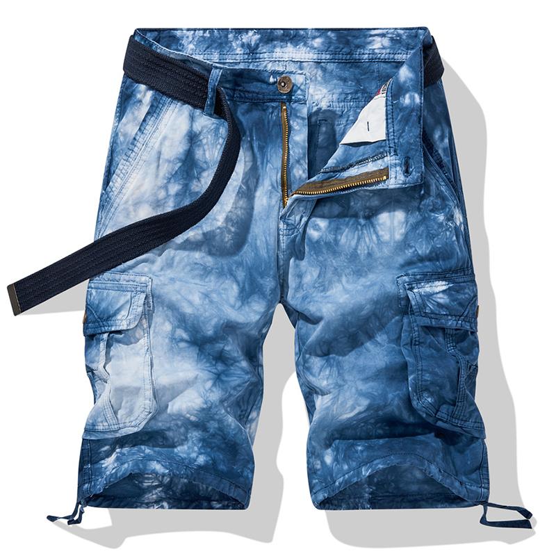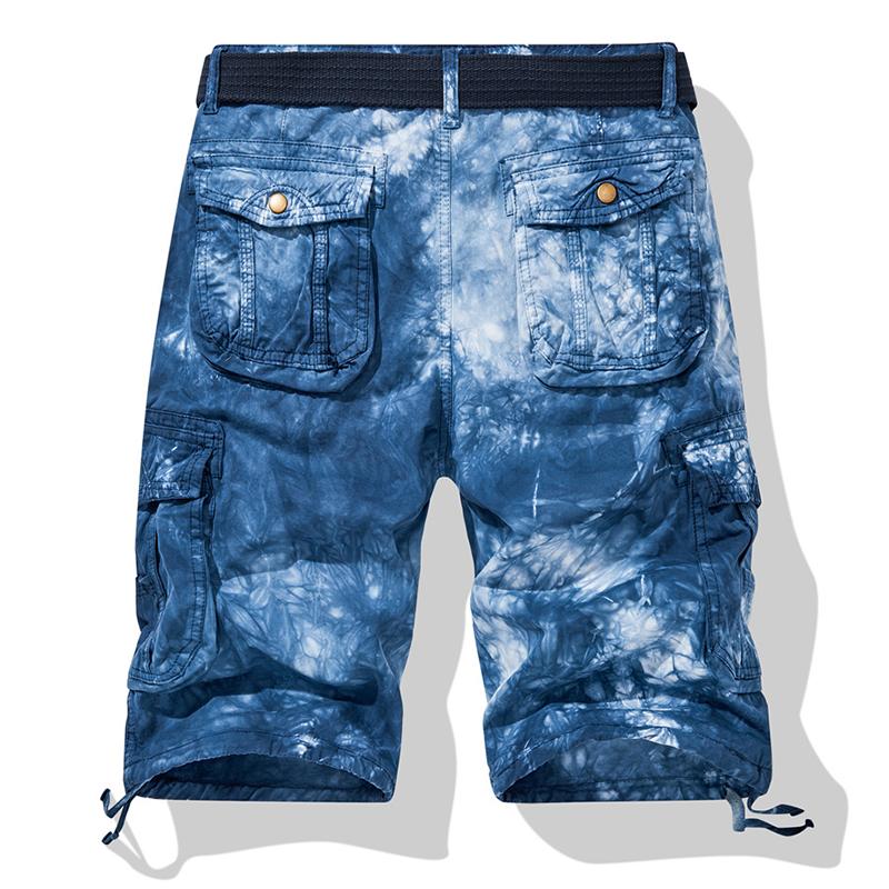 Blau gemusterte Cargo-Shorts mit Gürtel - Leo