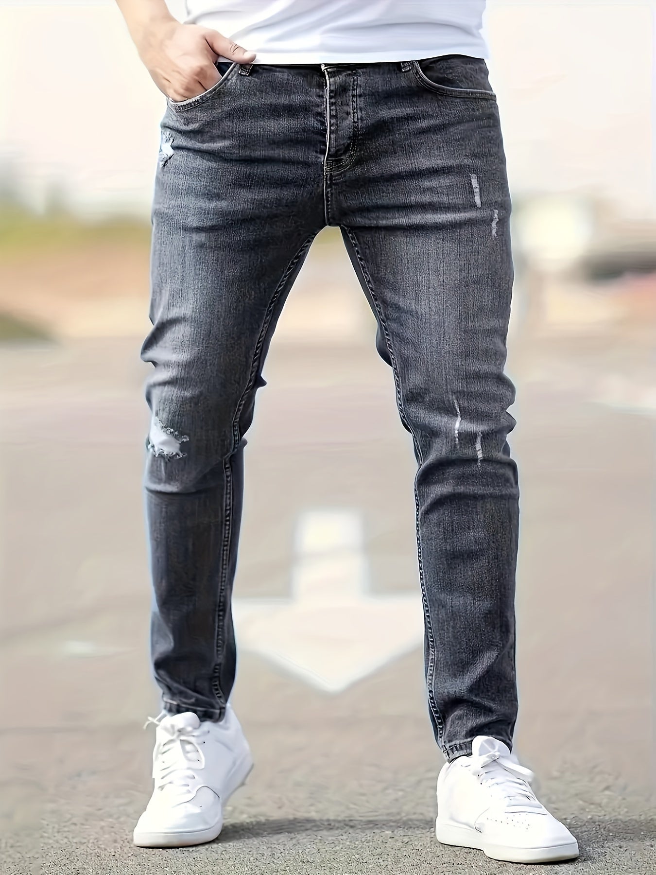 Used-Look für trendigen Stil: Der weiche und dennoch strapazierfähige Denimstoff sorgt für ein angenehmes Tragegefühl, selbst an langen Tagen. Der enge Schnitt und die mittlere Taille bieten eine bequeme und schmeichelhafte Passform, während die dezenten Risse und der Used-Look für einen modernen und einzigartigen Look sorgen. Diese Jeans sind ideal, um einen stylischen und dennoch entspannten Look zu kreieren, der Ihre Persönlichkeit und Ihren individuellen Stil unterstreicht.