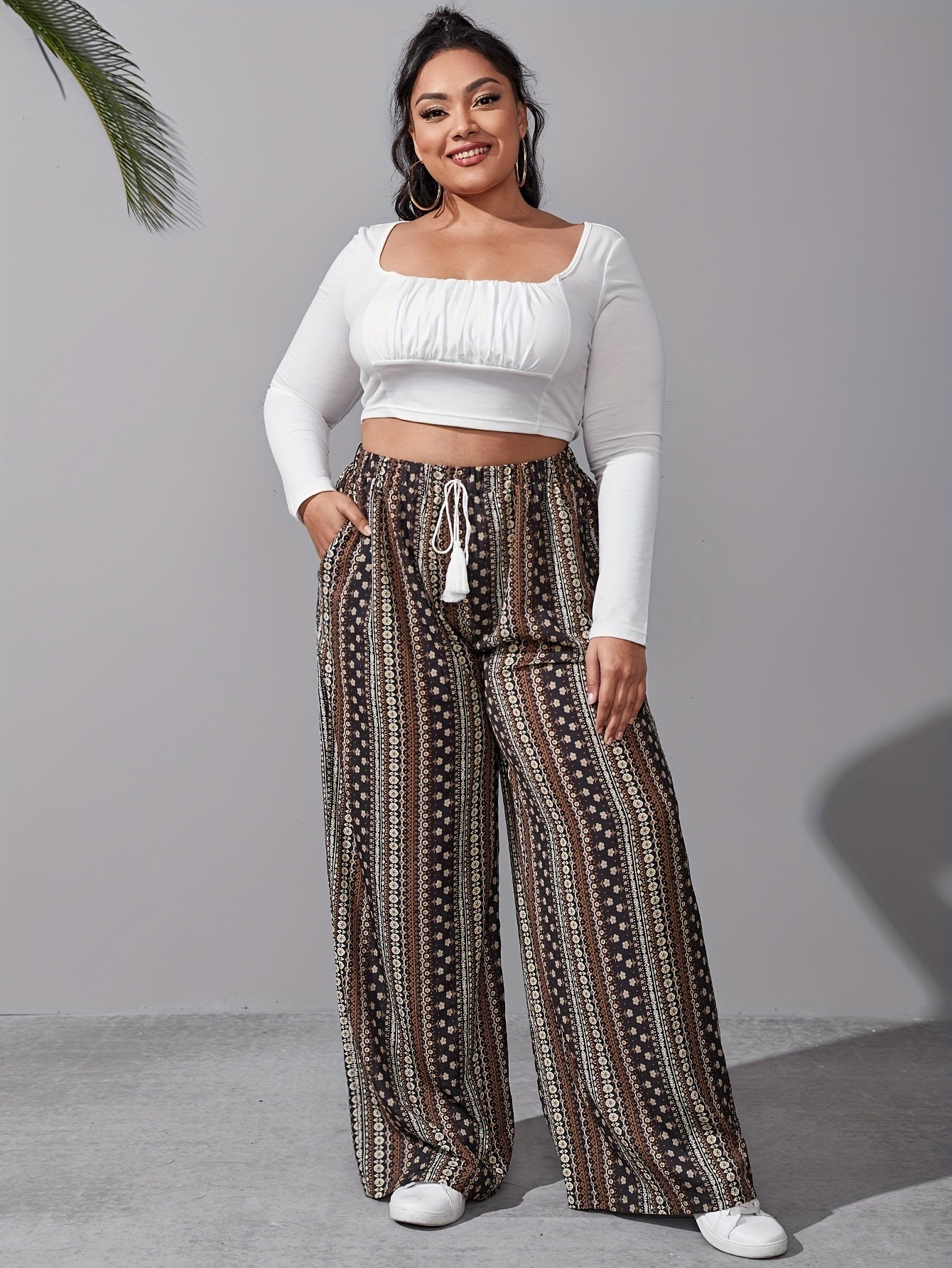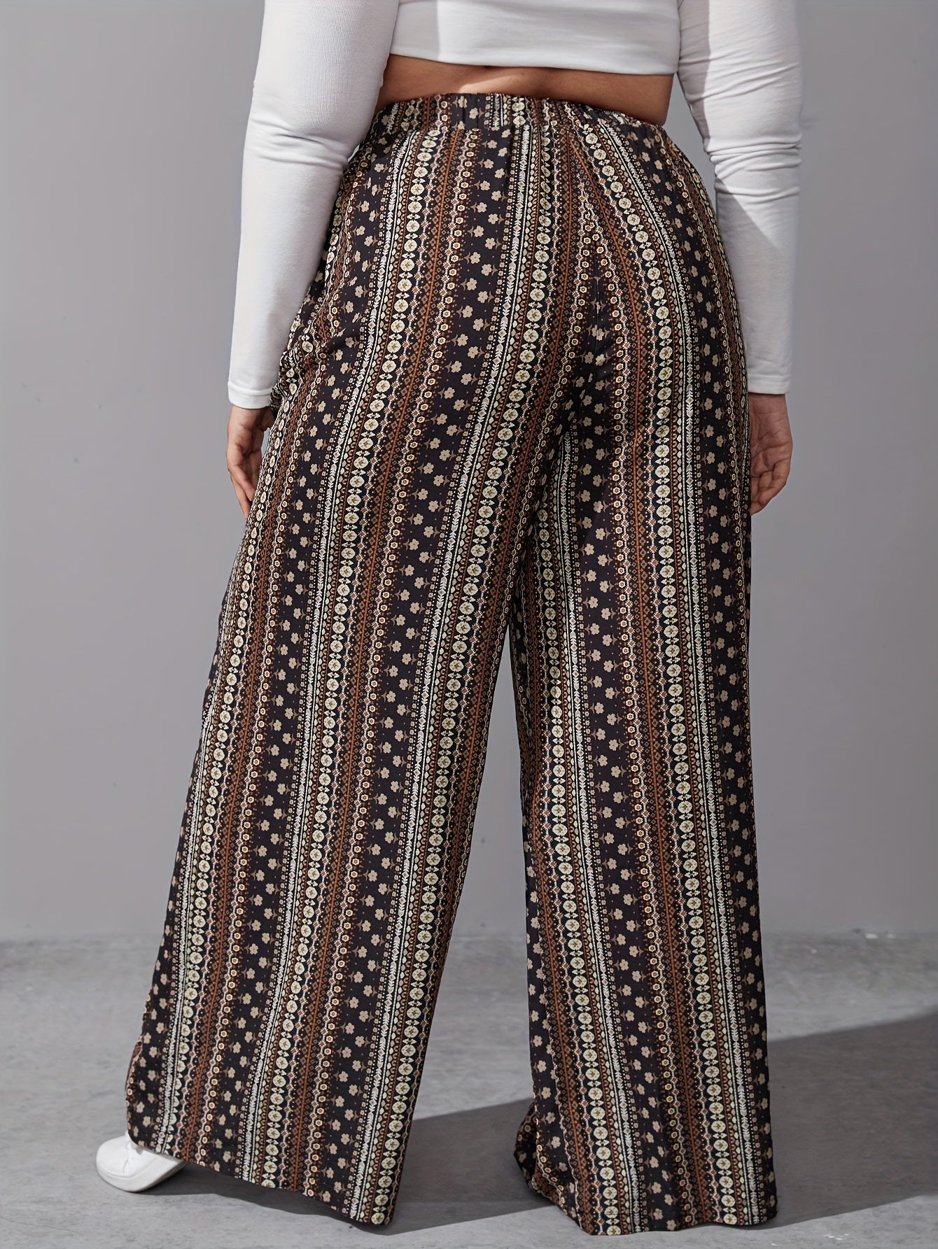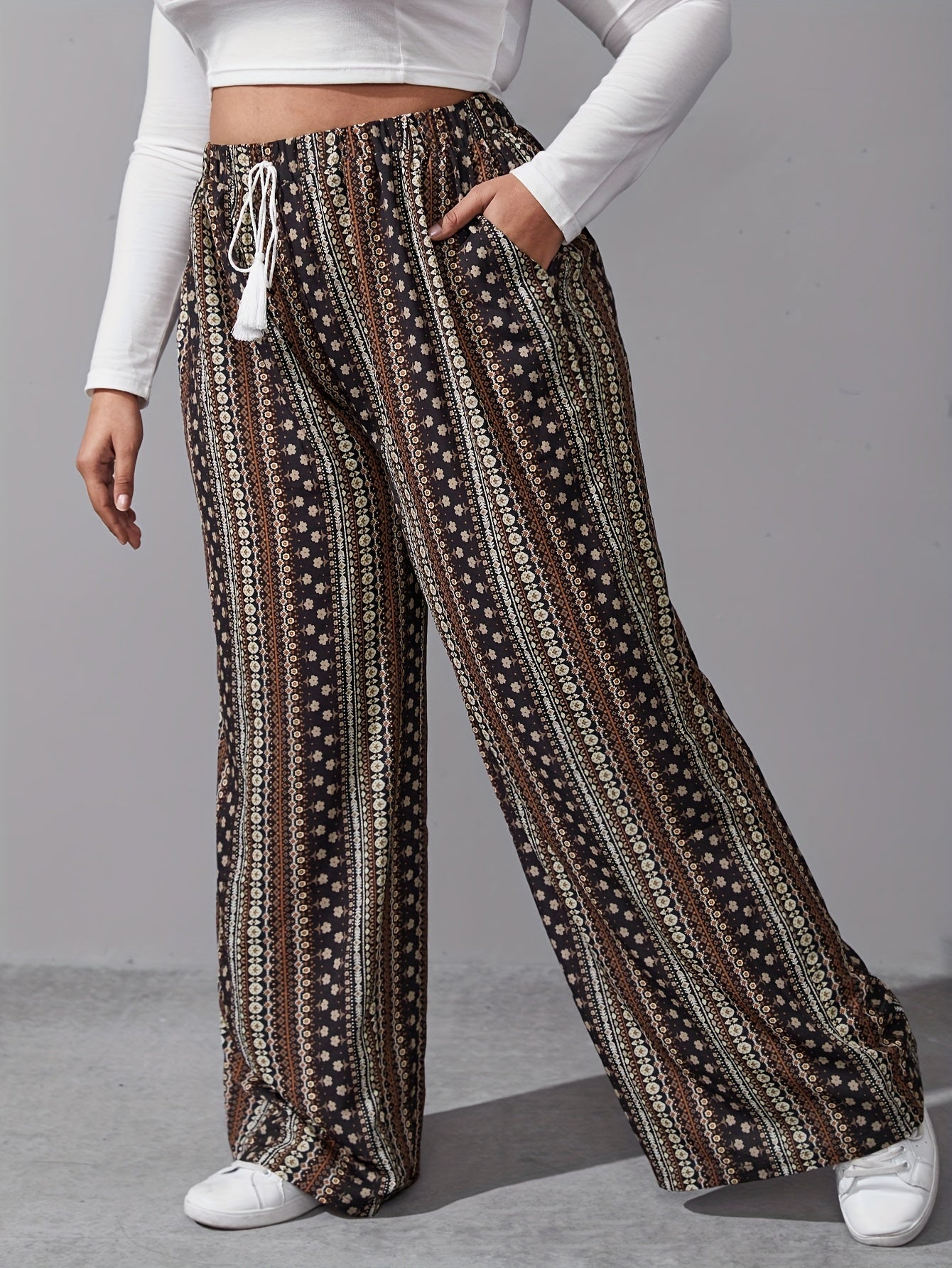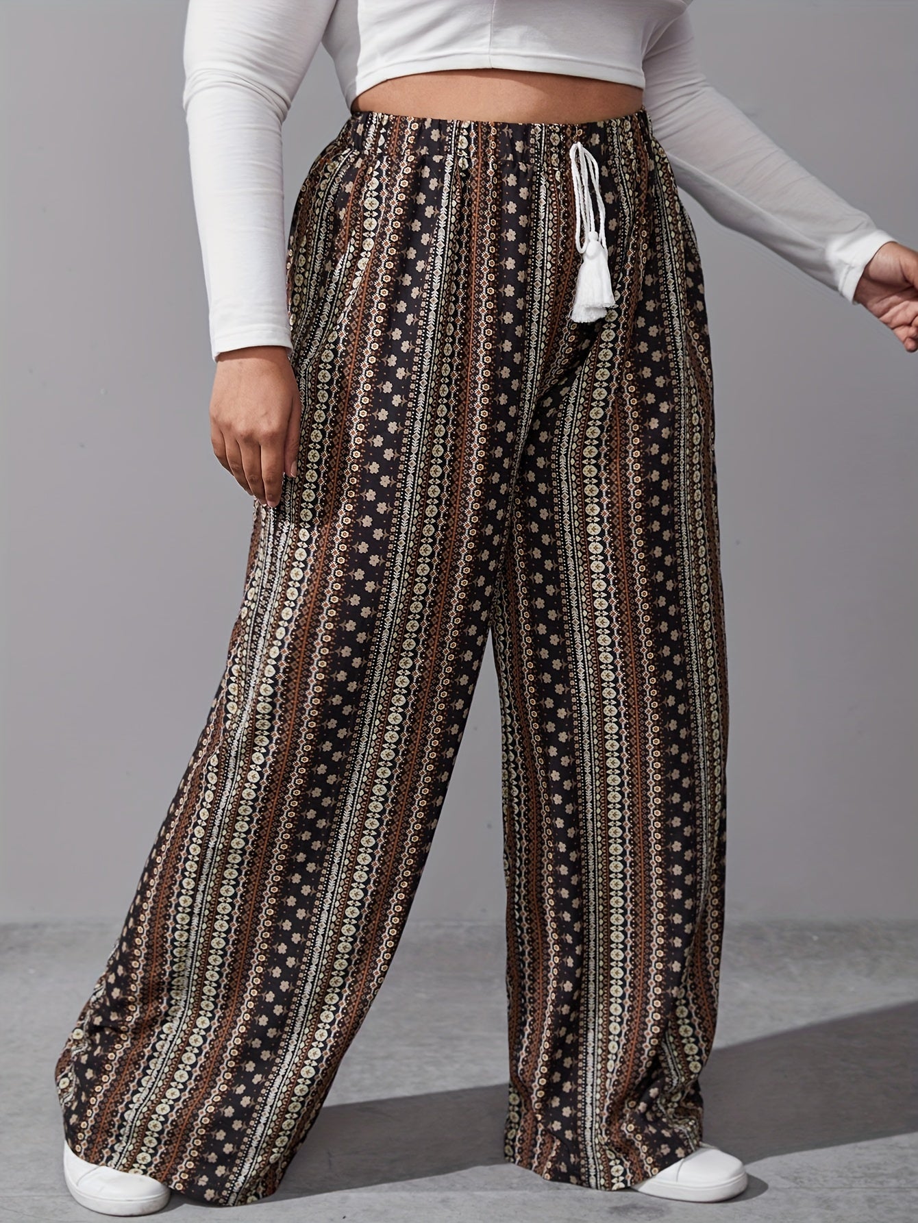 Bunte weite Boho-Hose mit Ethnomuster und Kordelzug - Mila
