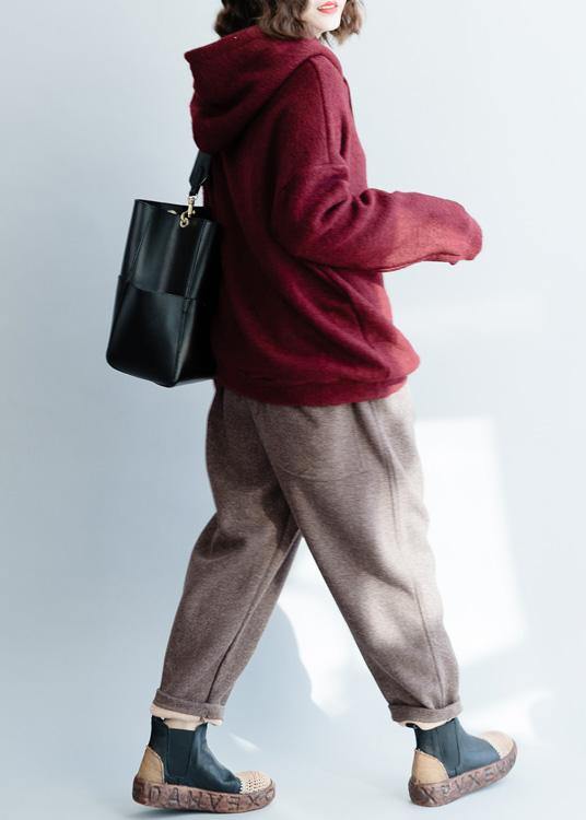 Burgunderrote kuschelige strickbluse mit kapuze – Mila