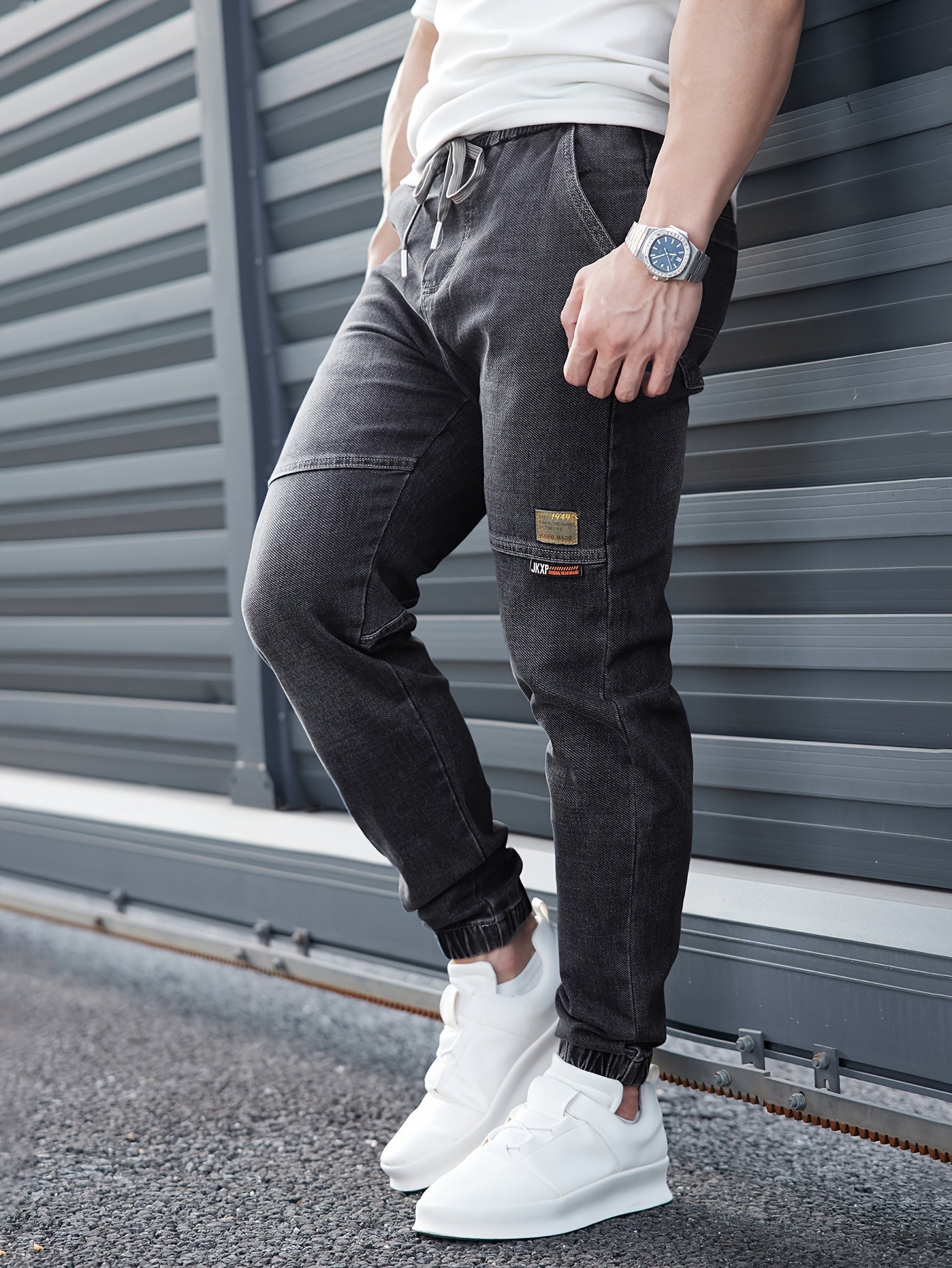 Jogger-Design mit praktischem Kordelzug: Der weiche und strapazierfähige Denimstoff sorgt für ein angenehmes Tragegefühl, selbst an langen Tagen. Der lockere Schnitt und der elastische Bund mit Kordelzug bieten eine bequeme Passform, während die zusätzlichen Taschen und die dekorativen Nähte für einen funktionalen und modernen Look sorgen.