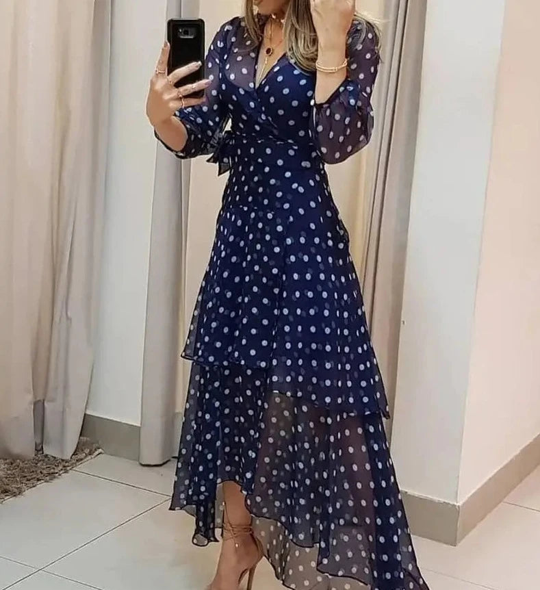 Eleganz trifft auf zeitlosen Charme: Das Elena Elegante Marineblaue Abendkleid steht für klassische Schönheit und moderne Eleganz. Mit seinem tiefen V-Ausschnitt und der geschwungenen, asymmetrischen Silhouette ist dieses Kleid ein wahrer Blickfang bei jeder Abendveranstaltung.