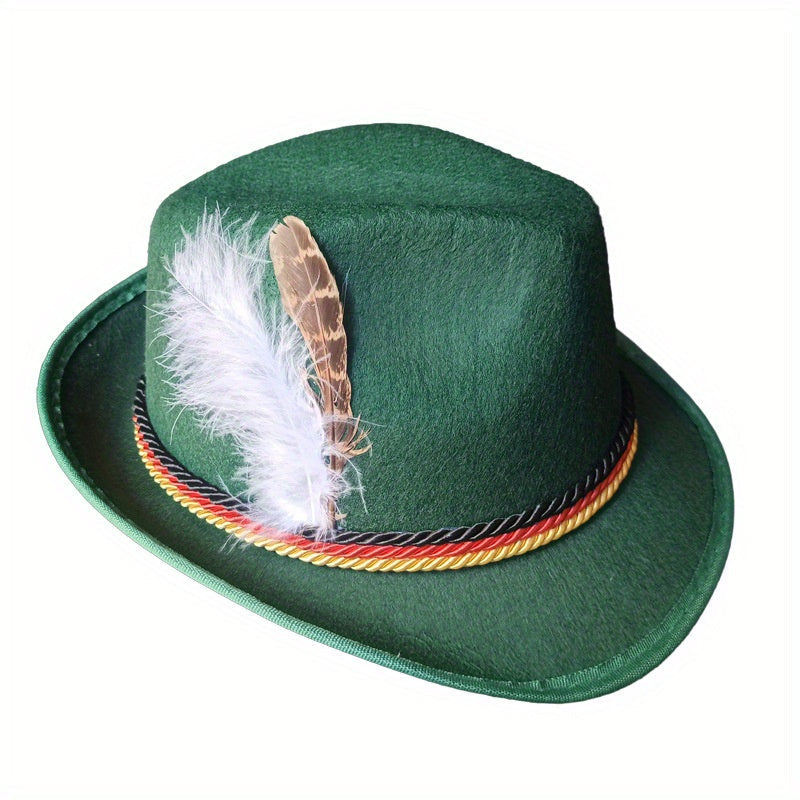 Dieser festliche Oktoberfest-Hut im klassischen Berg- und Jazzstil ist das perfekte Accessoire für jede Party oder Feier. Der elegante Filzhut ist mit einer auffälligen Feder verziert, die in der Länge variieren kann, und einem dekorativen Band, das den authentischen Look abrundet.