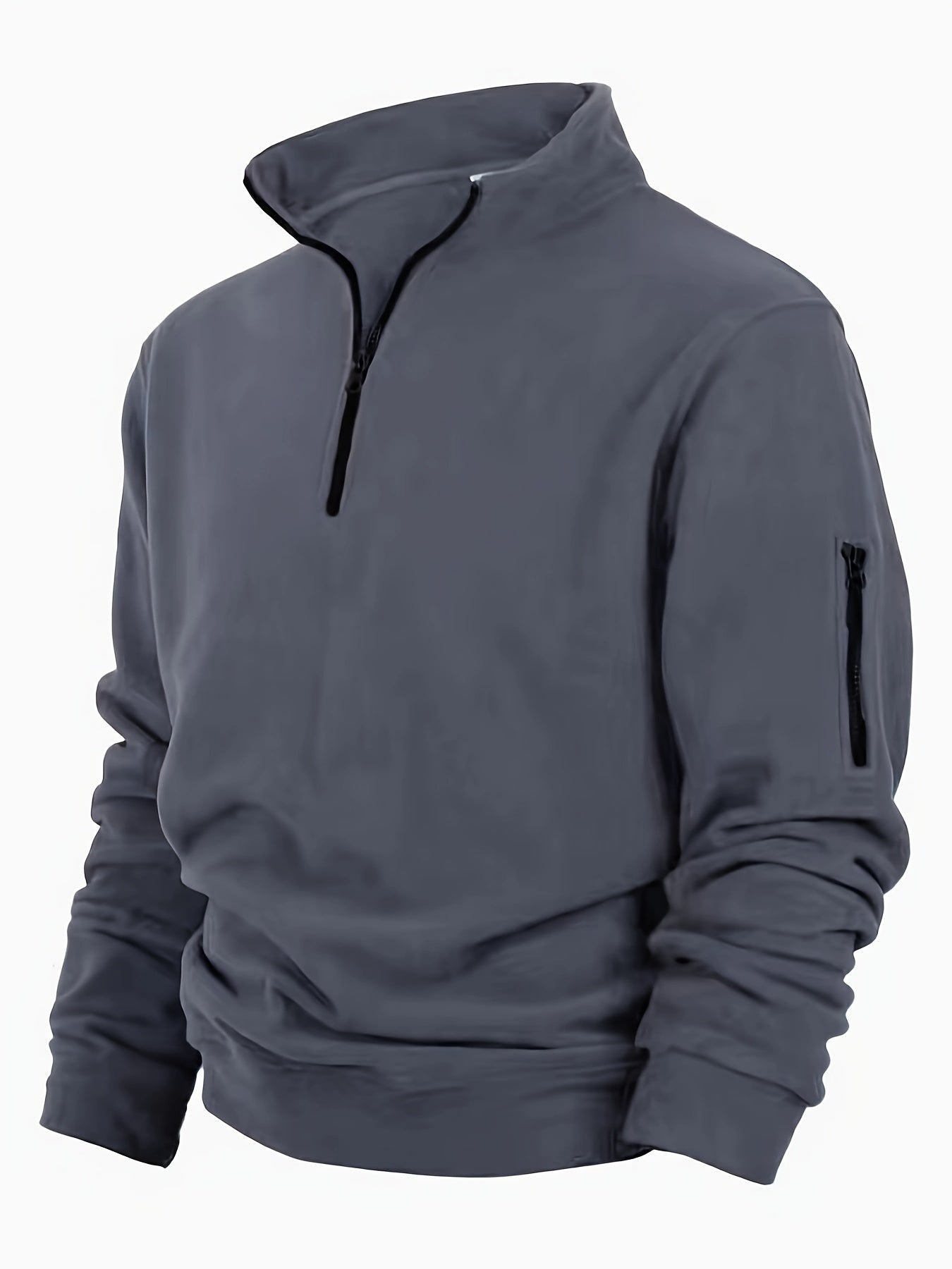 Der Sweater mit Reißverschlusskragen und praktischer Ärmeltasche vereint lässigen Stil mit Funktionalität. Der weiche Stoff sorgt für optimalen Tragekomfort, während das atmungsaktive Design dafür sorgt, dass du dich den ganzen Tag frisch und wohl fühlst. Ein vielseitiges Teil, das du immer wieder tragen möchtest.