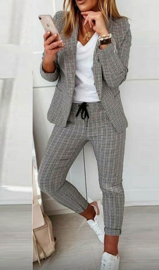 Verleihen Sie Ihrer Garderobe eine stilvolle Note mit unserem karierten Set. Dieses elegante Ensemble ist perfekt für Frauen, die nach einem trendigen und bequemen Look suchen. Mit seinem klassischen karierten Muster und dem modernen Design strahlt dieses Set zeitlose Eleganz aus.