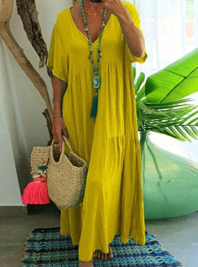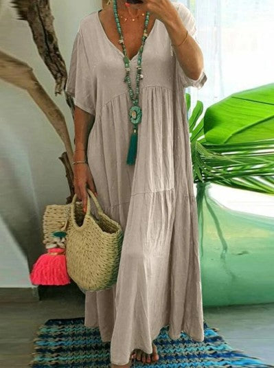 "Kleid aus Baumwolle und Leinen Anne: Dieses luftige Kleid kombiniert weiche Baumwolle und leichtes Leinen für optimalen Tragekomfort. Perfekt für einen entspannten und stilvollen Look."