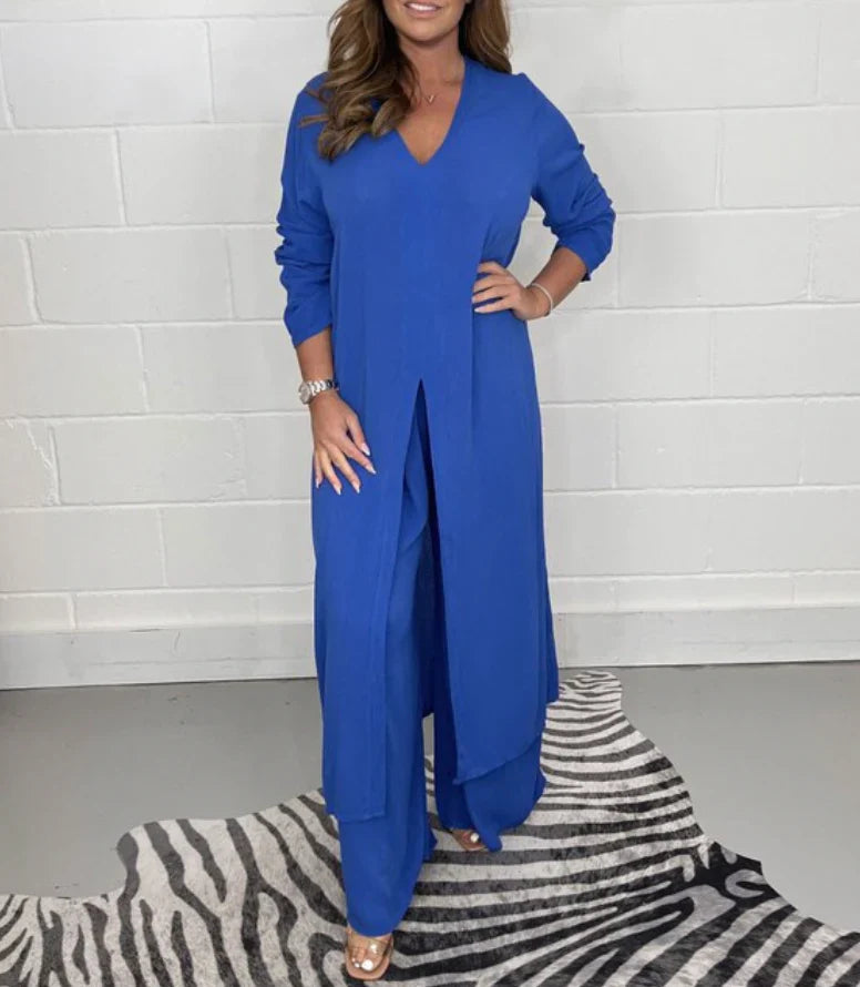 Lenka präsentiert den Zweiteiligen Anzug für Frauen, einen schicken zweiteiligen Anzug für moderne Frauen. Dieses Set kombiniert eine maßgeschneiderte Jacke mit einer passenden Hose und bietet einen raffinierten und stilvollen Look, perfekt für berufliche und formelle Anlässe.