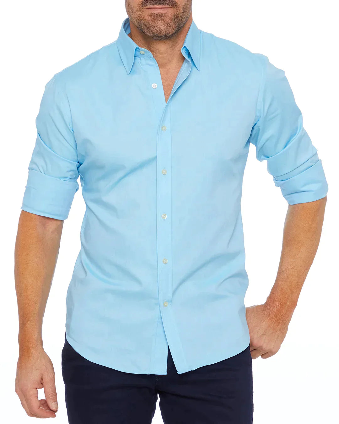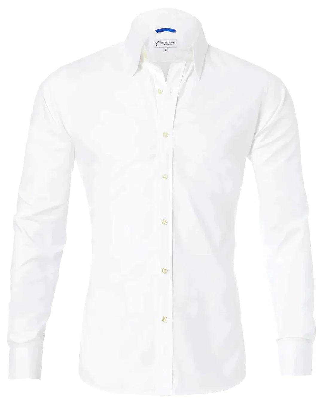 Handgefertigt und nicht massenproduziert, steht unser Hemd für Liebe zum Detail. Von seinem erstklassigen ägyptischen Baumwolle bis zur Innovation des Stay-up-Kragens, stechen Sie in jedem Raum heraus.
