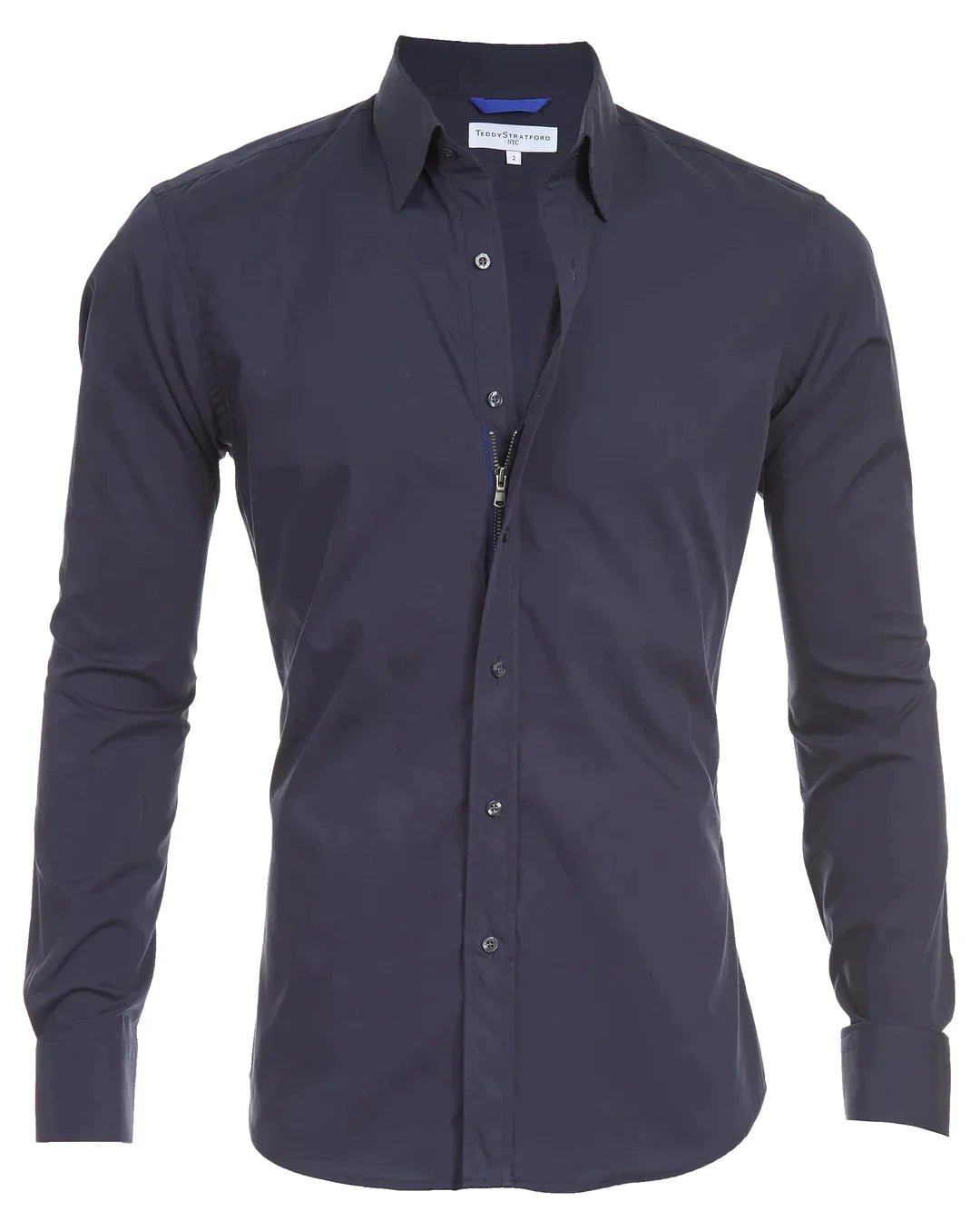 Wir präsentieren unser Elite Stretch Zip-Hemd - Inbegriff von erstklassigem Handwerk und zeitlosem Design. Heben Sie jedes Outfit mit Selbstvertrauen hervor. Entworfen für den anspruchsvollen Gentleman.