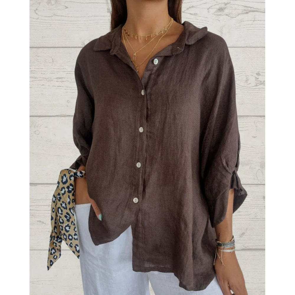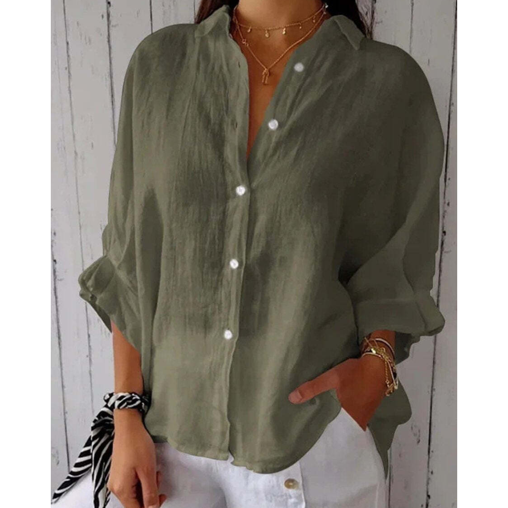 Olivgrüne Bluse mit Perlmuttknöpfen und Umschlagärmeln - Sophie