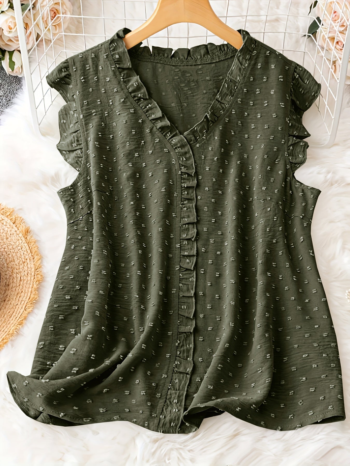 Sanft und stilvoll für jeden Tag. Unsere 'Mia' Bluse in Olivgrün bietet eine zarte Textur und feine Details, die sie zu einem unverzichtbaren Bestandteil jeder Garderobe machen. Das Rüschendetail entlang der Knopfleiste fügt eine feminine Note hinzu.