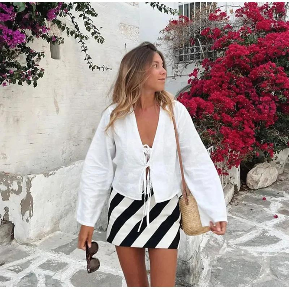 Erlebe die Vielseitigkeit dieses Shirts, das sich sowohl lässig mit Shorts als auch schick mit einem Rock kombinieren lässt. Ein unverzichtbares Kleidungsstück, das in keiner Garderobe fehlen darf.