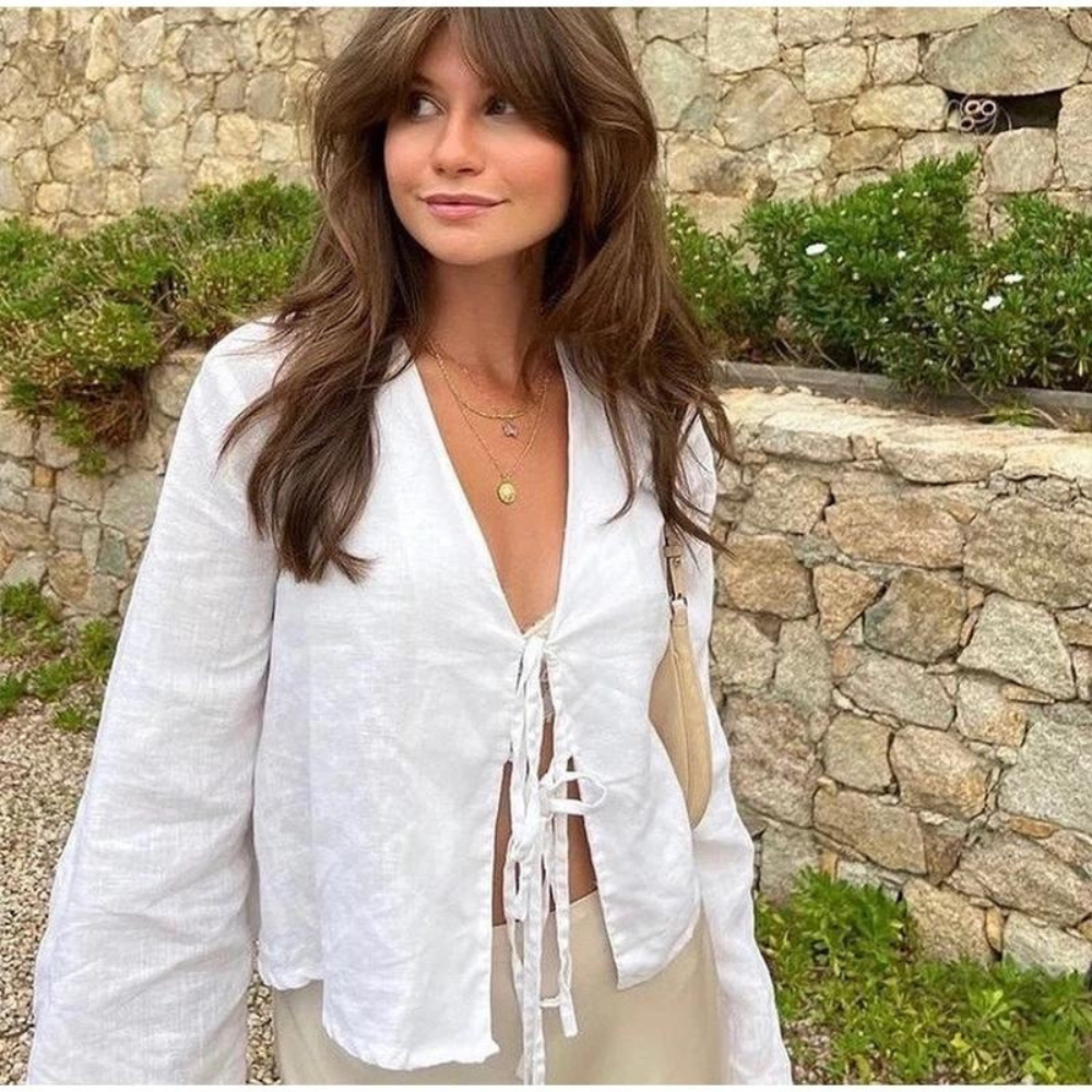Bringe frischen Wind in deinen Kleiderschrank mit unserem olivgrünen Shirt mit V-Ausschnitt und Bindebändern. Dieses Shirt kombiniert moderne Details mit einem klassischen Design und ist perfekt für entspannte Tage und sommerliche Anlässe.
