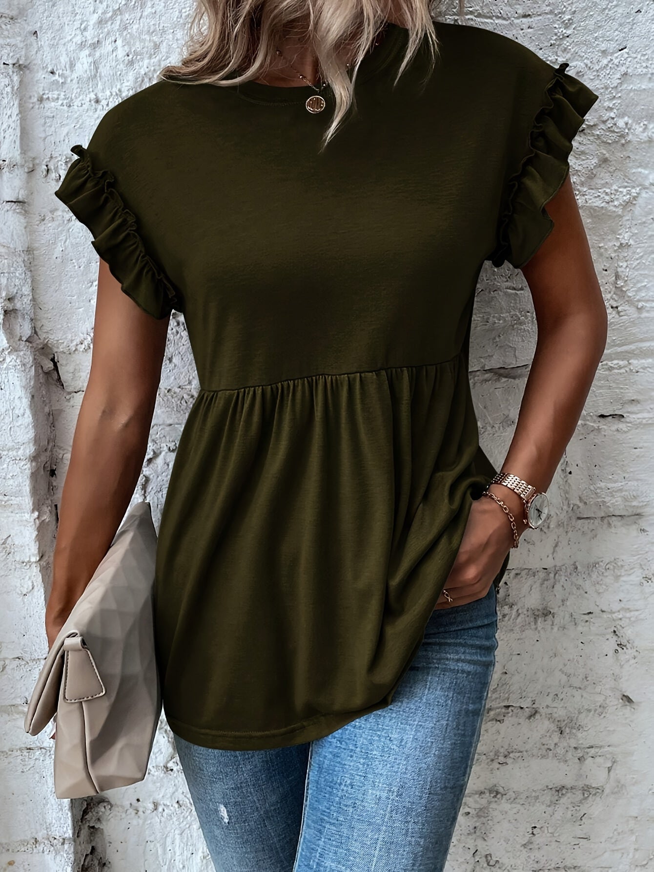 Olivgrünes T-Shirt mit Rüschen - Ella