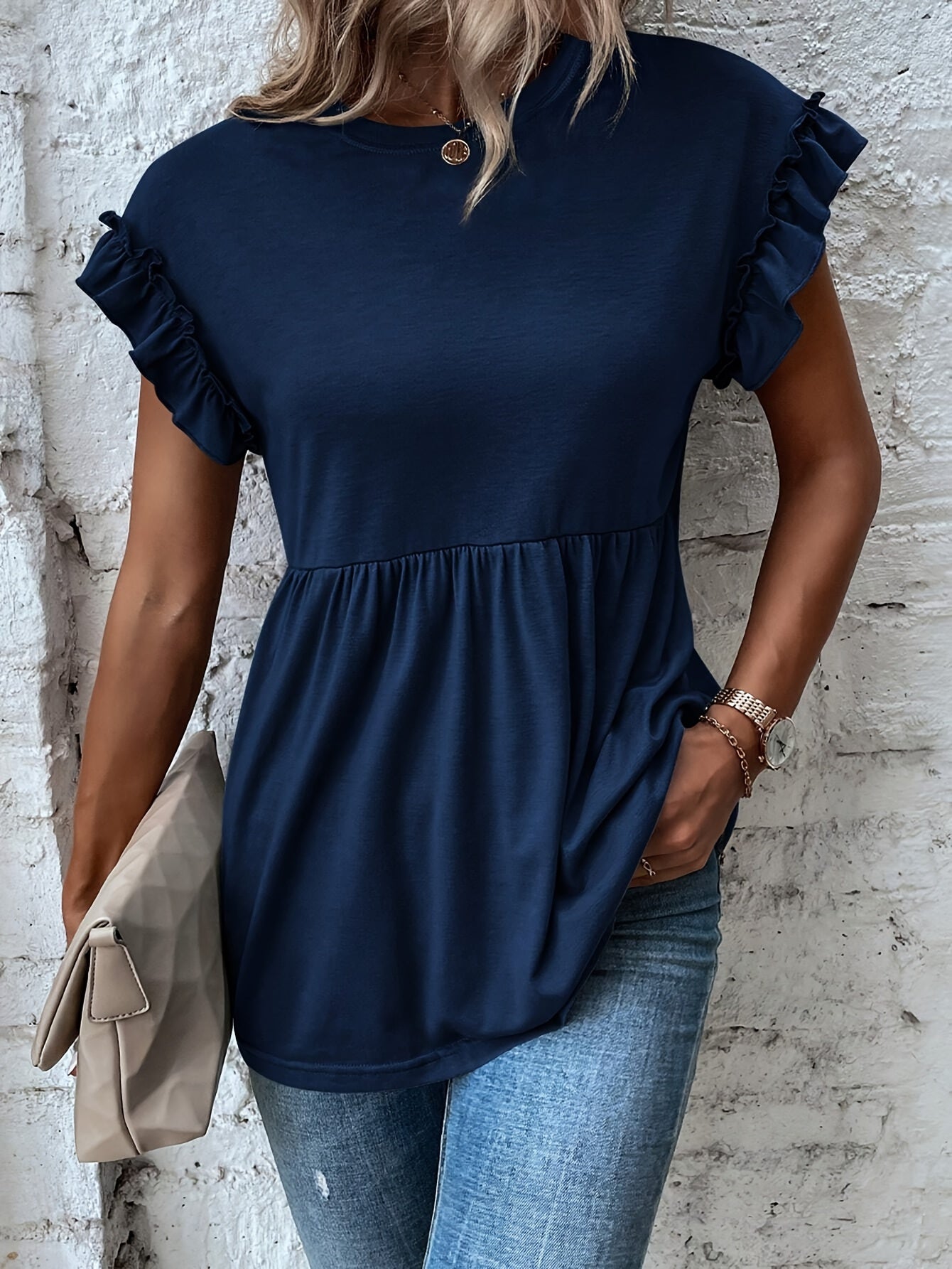 Stilvolle Details: Die Rüschen an den Ärmeln und die leicht taillierte Passform verleihen diesem T-Shirt eine feminine Note. Der klassische Rundhalsausschnitt sorgt für einen zeitlosen und lässigen Look.