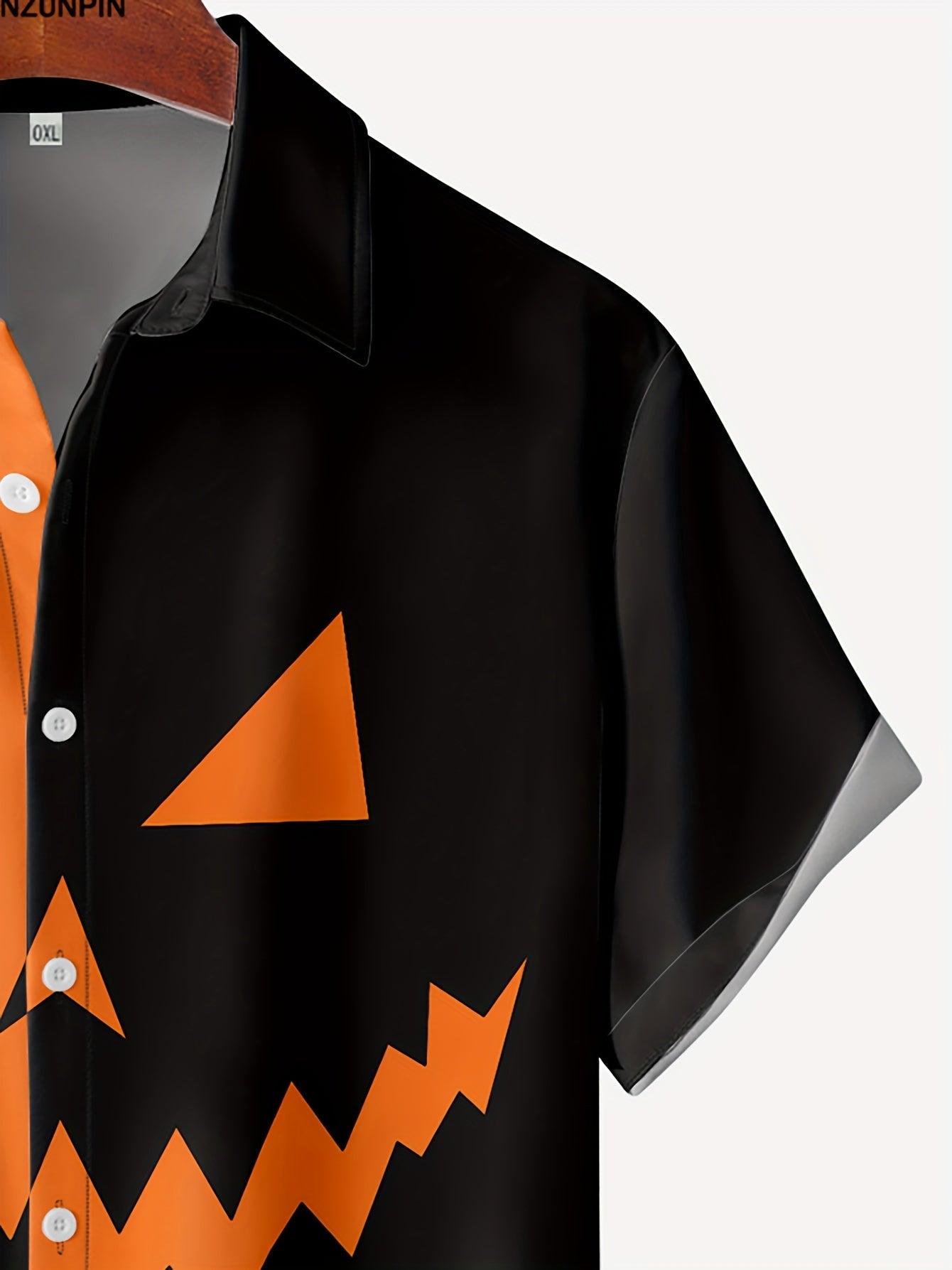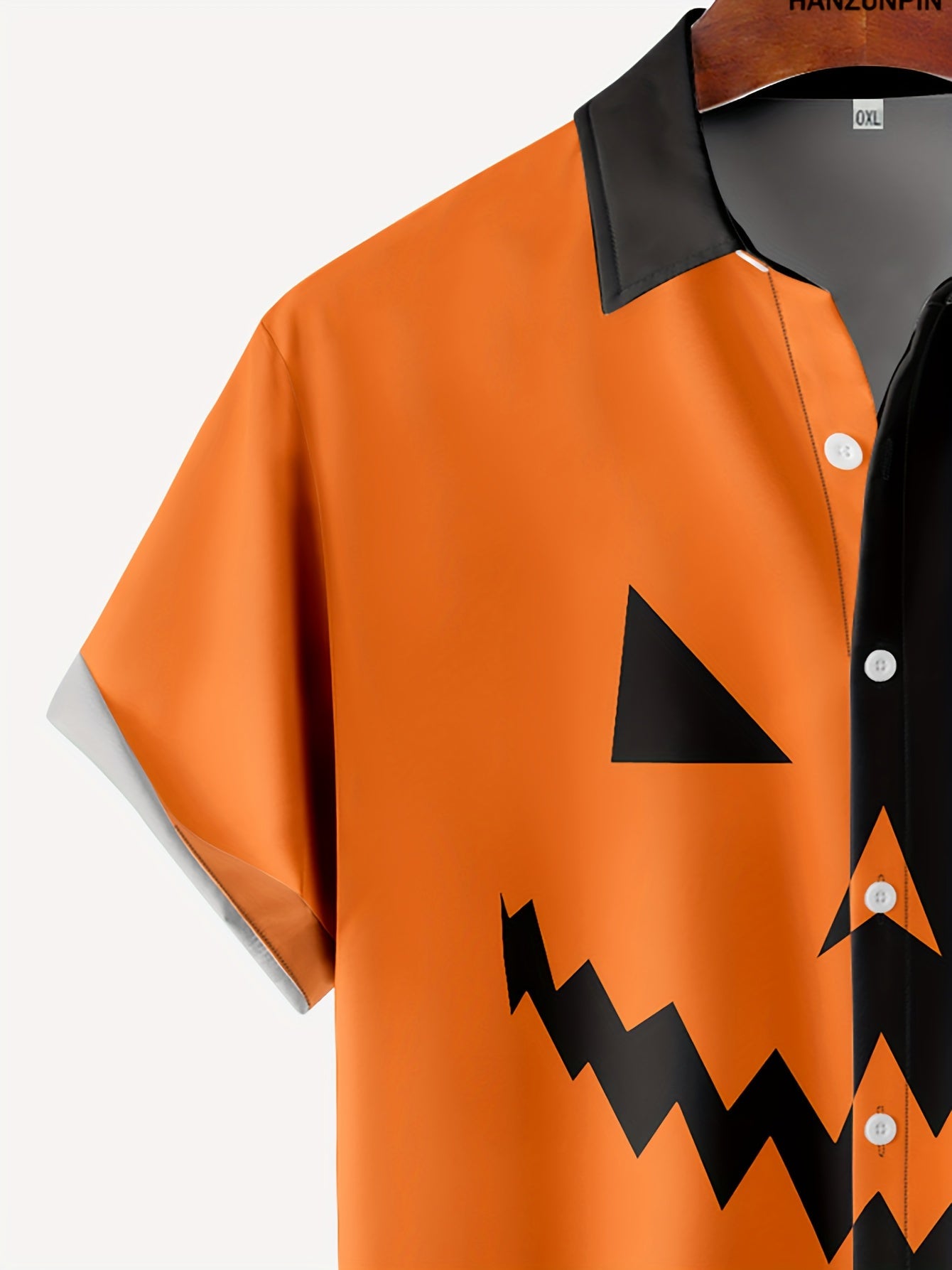 Das Schwarz-Orange Halloween Kürbis Hemd ist die perfekte Wahl für einen lässigen, verspielten Look während der Halloween-Saison. Dieses kurzärmelige Hemd mit einem auffälligen Kürbisgesicht-Print kombiniert Komfort mit einer festlichen Note, ideal für Wochenendausflüge oder Halloween-Partys.