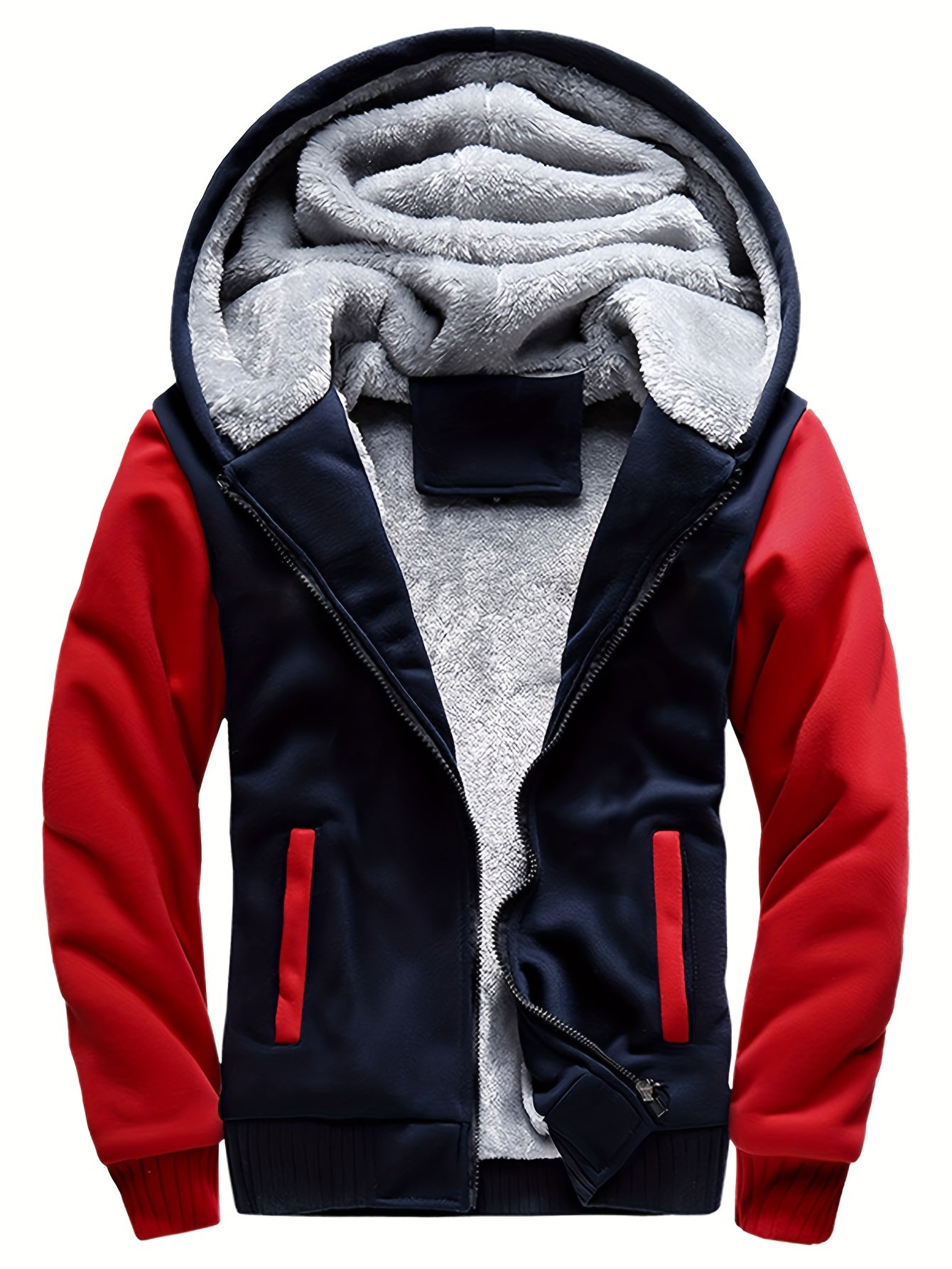Die Innenseite dieser Jacke ist komplett mit weichem Fleece gefüttert, das die Wärme speichert und für zusätzlichen Komfort sorgt. Die große Kapuze schützt den Kopf vor Kälte und Wind, während der durchgehende Reißverschluss einen einfachen Einstieg ermöglicht. Die praktischen Taschen bieten ausreichend Platz für Ihre täglichen Essentials und runden das funktionale Design ab.
