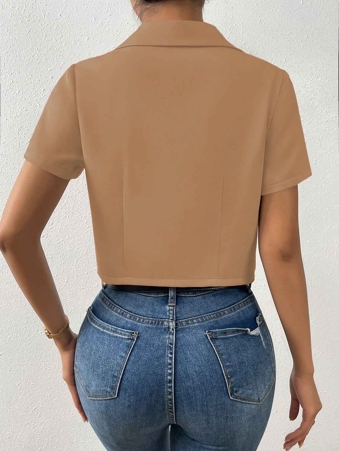 Bringe Eleganz und Chic in deinen Frühlings- und Sommerlook mit unserem schwarzen Button Crop Blazer. Dieser kurze Blazer vereint Stil und Raffinesse für Frauen, die modische Akzente setzen wollen. Perfekt für Büro, Abendveranstaltungen oder stilvolle Freizeitoutfits, sorgt dieser Blazer für einen selbstbewussten und modischen Auftritt – ideal für wärmere Tage, an denen du Leichtigkeit und Stil gleichermaßen suchst.
