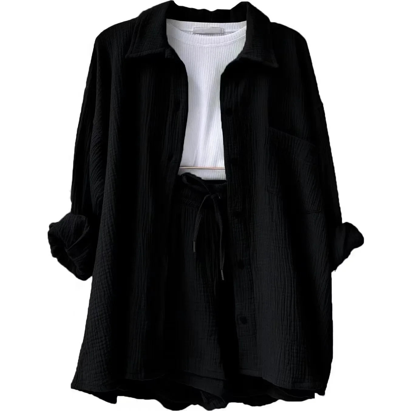 Schwarzes Damen Gemütliches Set mit Shorts und Hemd - Lola