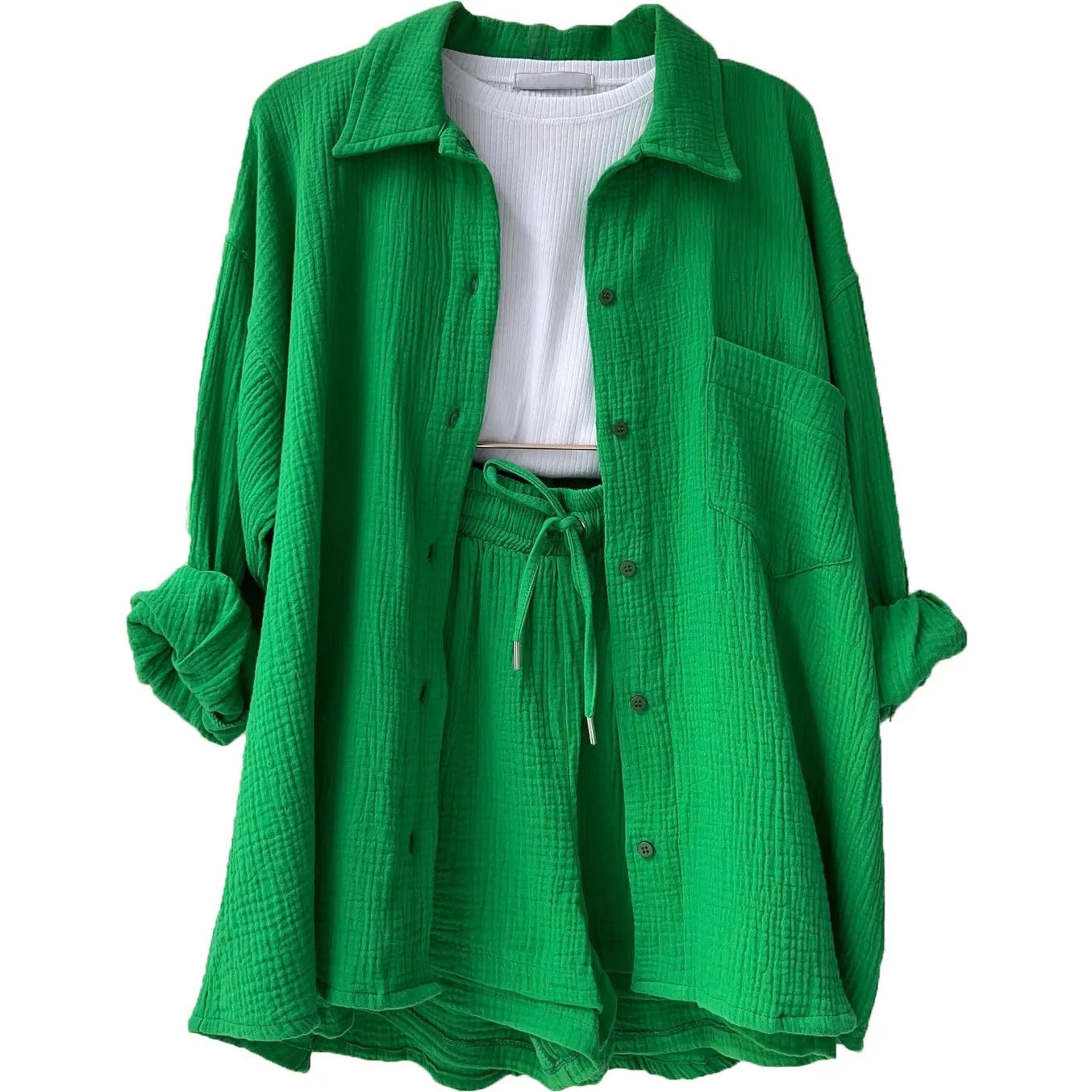Lockeres Hemd: Das locker geschnittene Hemd mit langen Ärmeln sorgt für einen lässigen Look, der sich leicht anziehen lässt und dir dennoch Stil verleiht. Bequeme Shorts: Die passenden Shorts mit Kordelzug bieten eine anpassbare Passform und höchsten Tragekomfort, egal ob du dich zu Hause entspannst oder unterwegs bist.