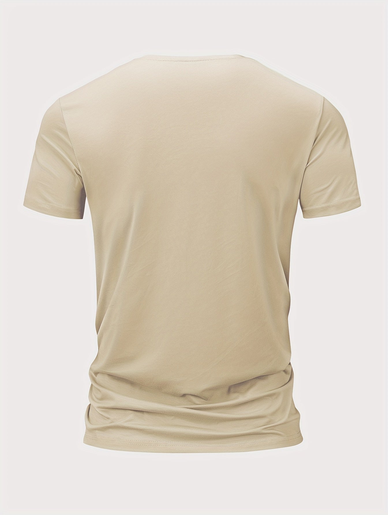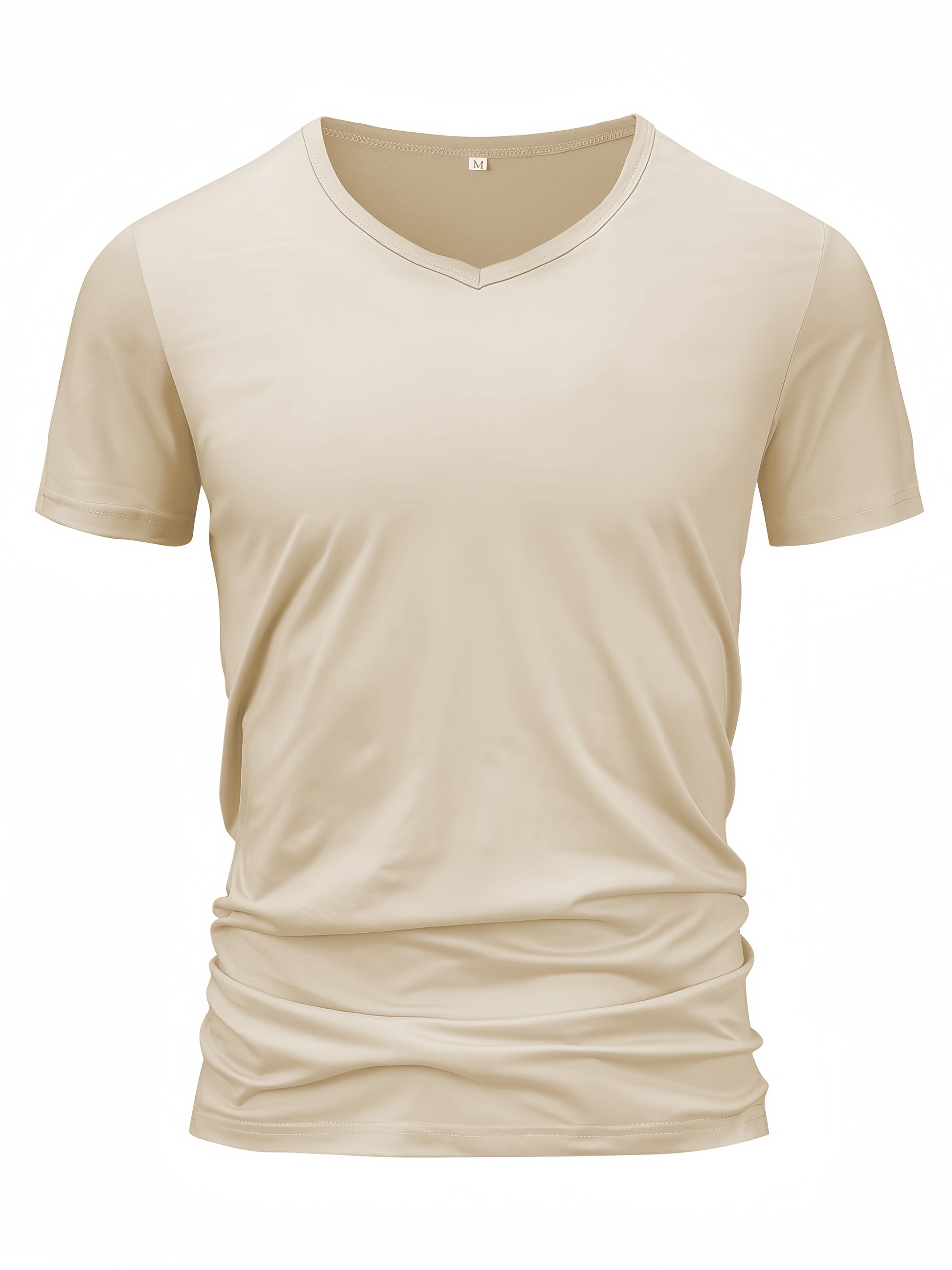 V-Ausschnitt Design: Der tiefgeschnittene V-Ausschnitt verleiht dem T-Shirt eine elegante Note und betont die maskuline Silhouette.