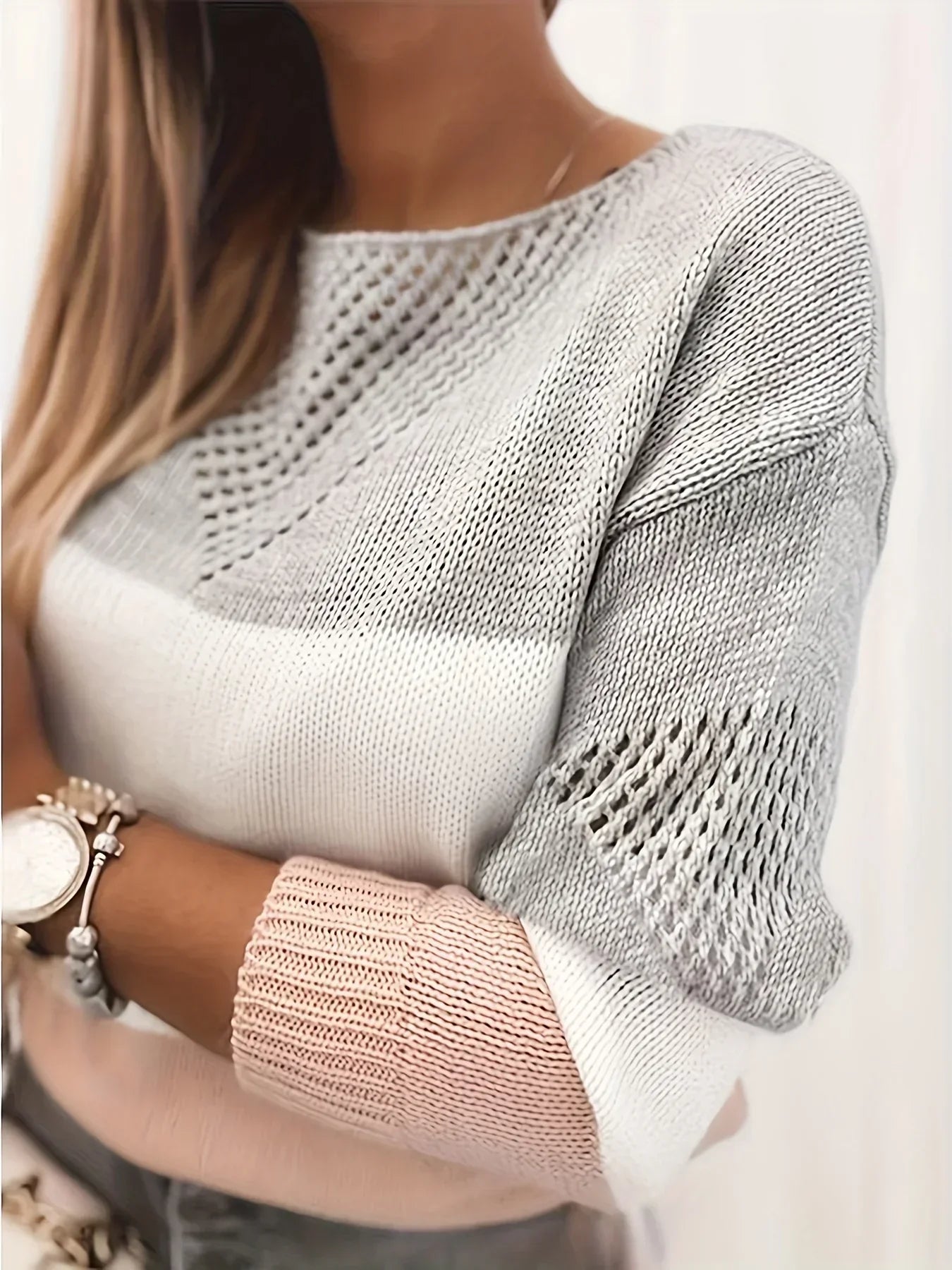 Der Strickpullover Elina in Grau, Weiß und Rosa ist die perfekte Ergänzung für Ihre Herbst- und Wintergarderobe. Mit seinen einzigartigen Details und dem raffinierten Design verleiht er jedem Outfit eine moderne und elegante Note.