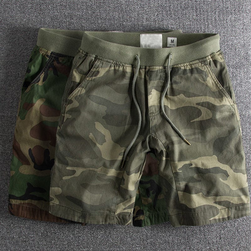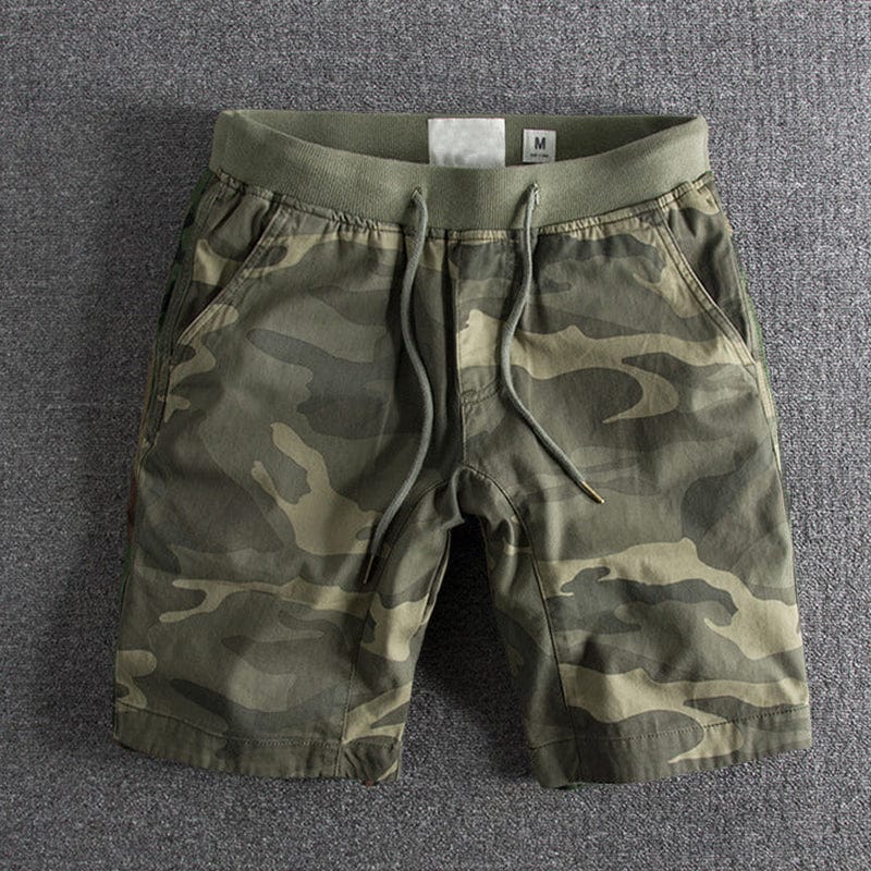 Tarnmuster Shorts in Olivgrün mit Kordelzug und Seitentaschen - Erik