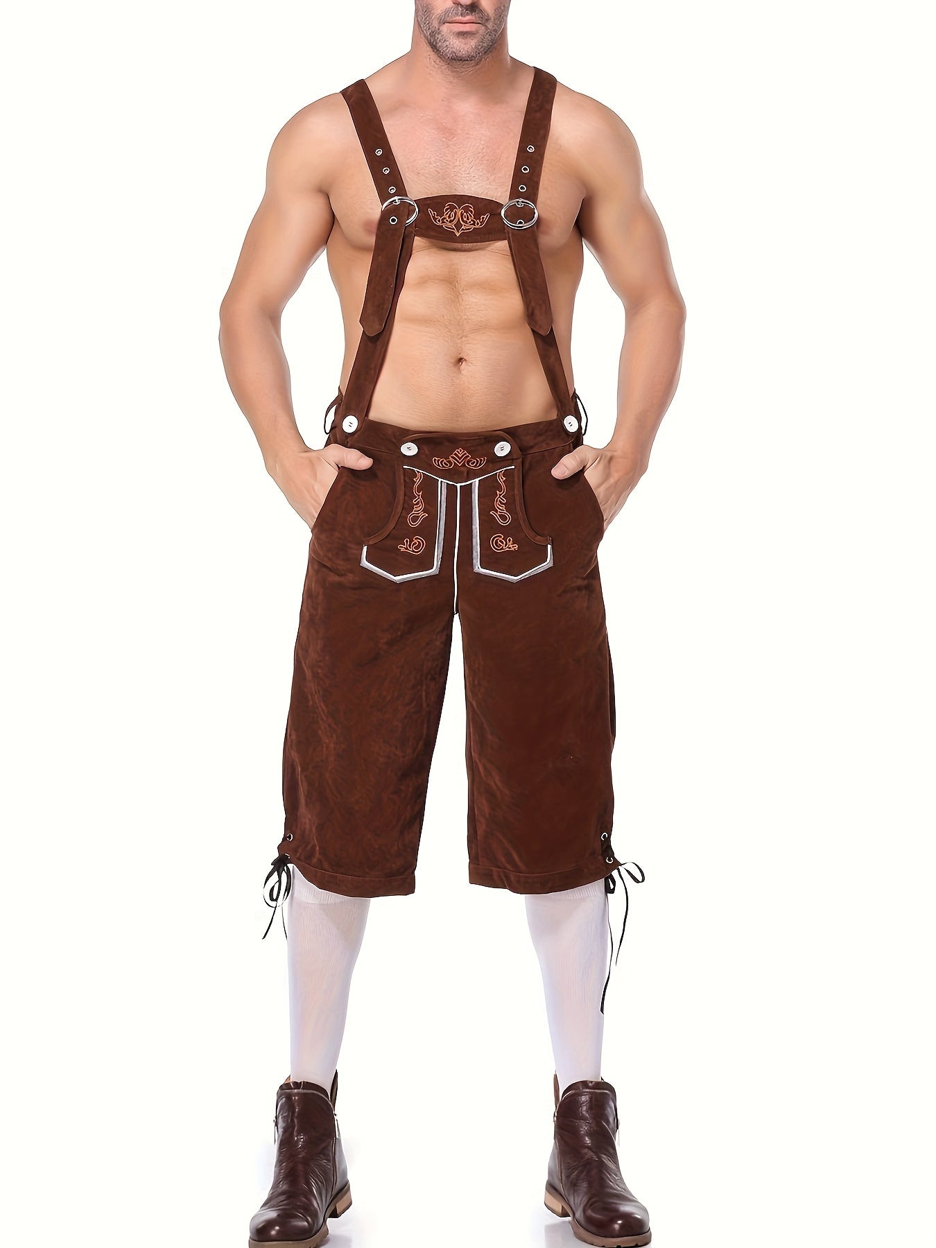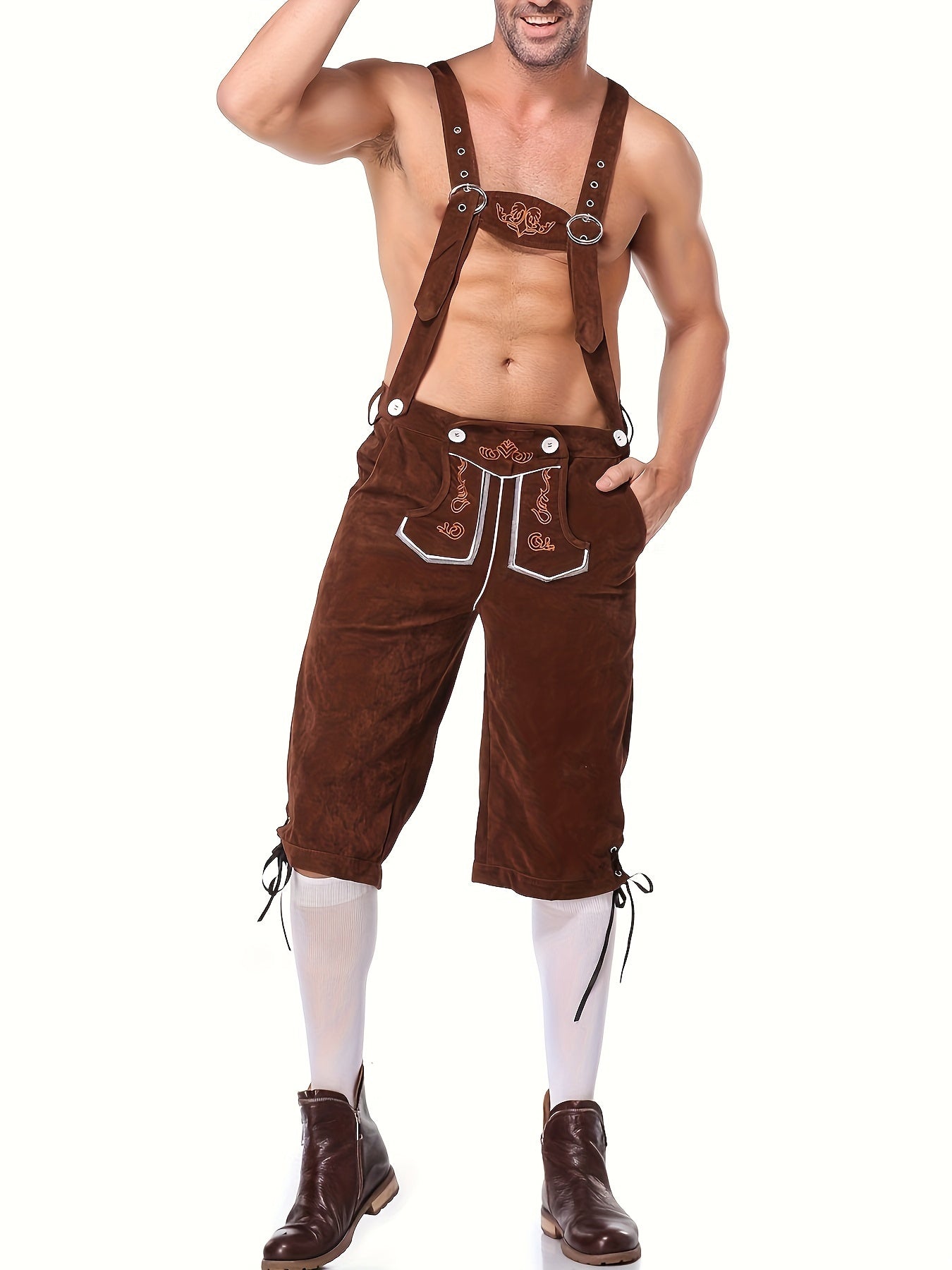 Diese klassischen braunen Lederhosen vereinen Tradition und Komfort, ideal für das Oktoberfest, Karneval oder Halloween-Partys. Die detaillierte Stickerei und die verstellbaren Träger verleihen diesem Outfit eine authentische Note, während das hochwertige Kunstleder für Komfort sorgt. Seien Sie bereit, die Blicke auf sich zu ziehen und sich selbstbewusst zu fühlen!