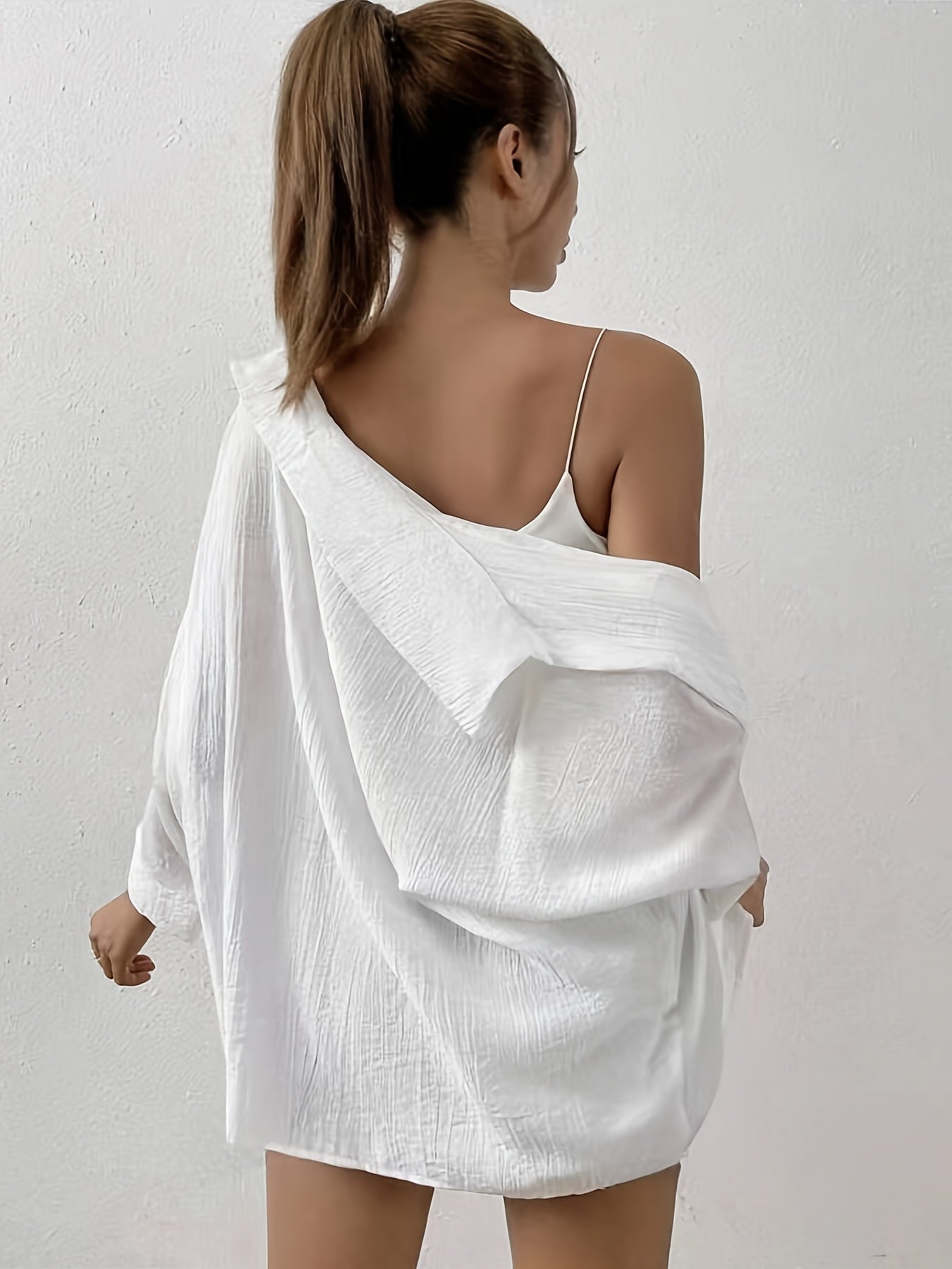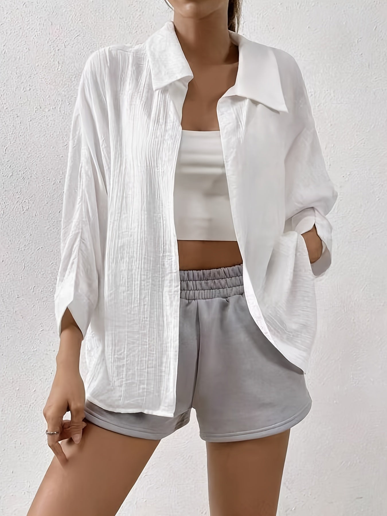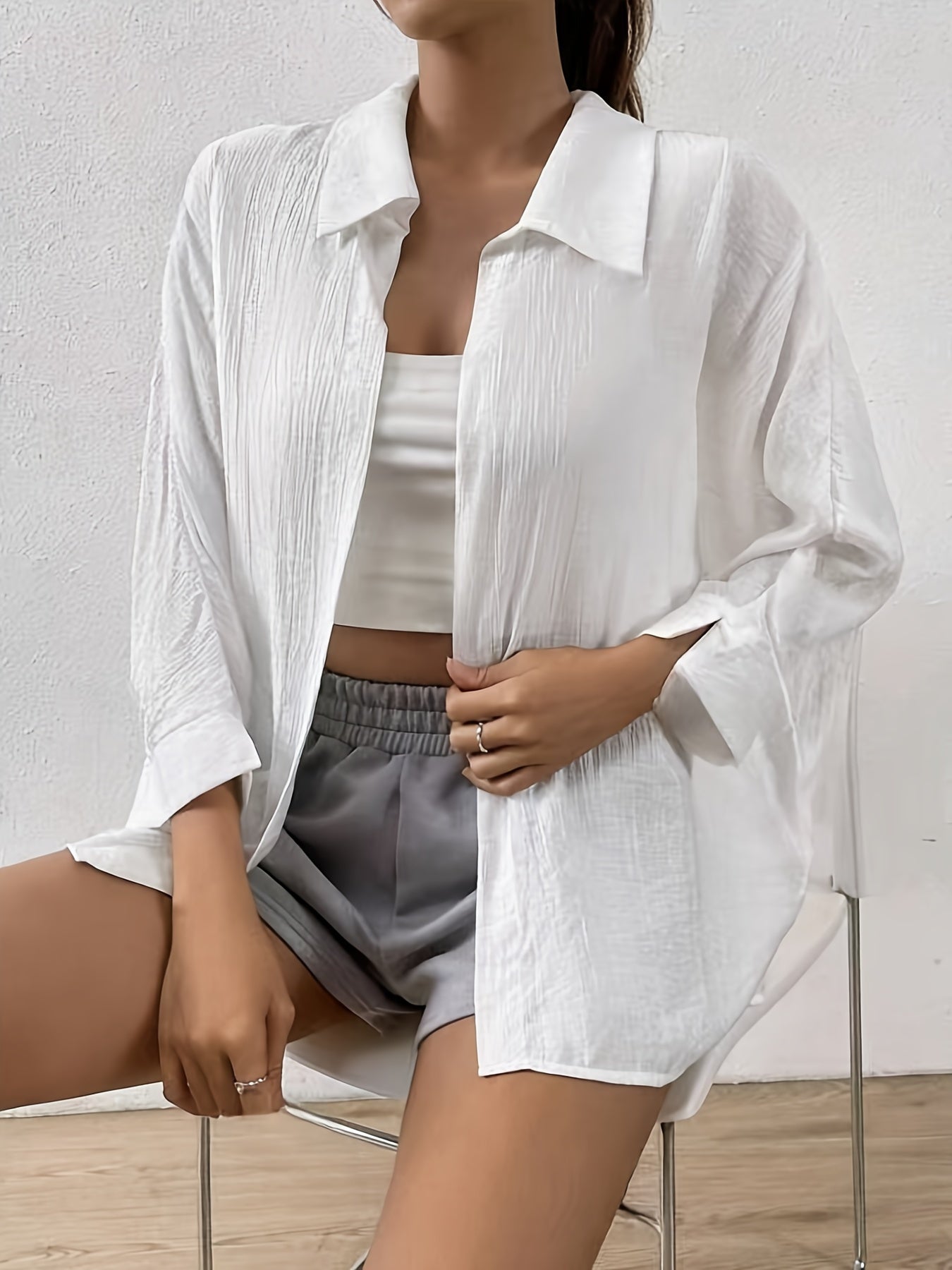 Genießen Sie unübertroffenen Komfort mit diesem stylischen Hemd. Die schlichte weiße Farbe lässt sich leicht mit verschiedenen Outfits kombinieren, von lässigen Shorts bis hin zu eleganten Hosen. Es ist die ideale Wahl für warme Sommertage oder als lässiges Layering-Stück.