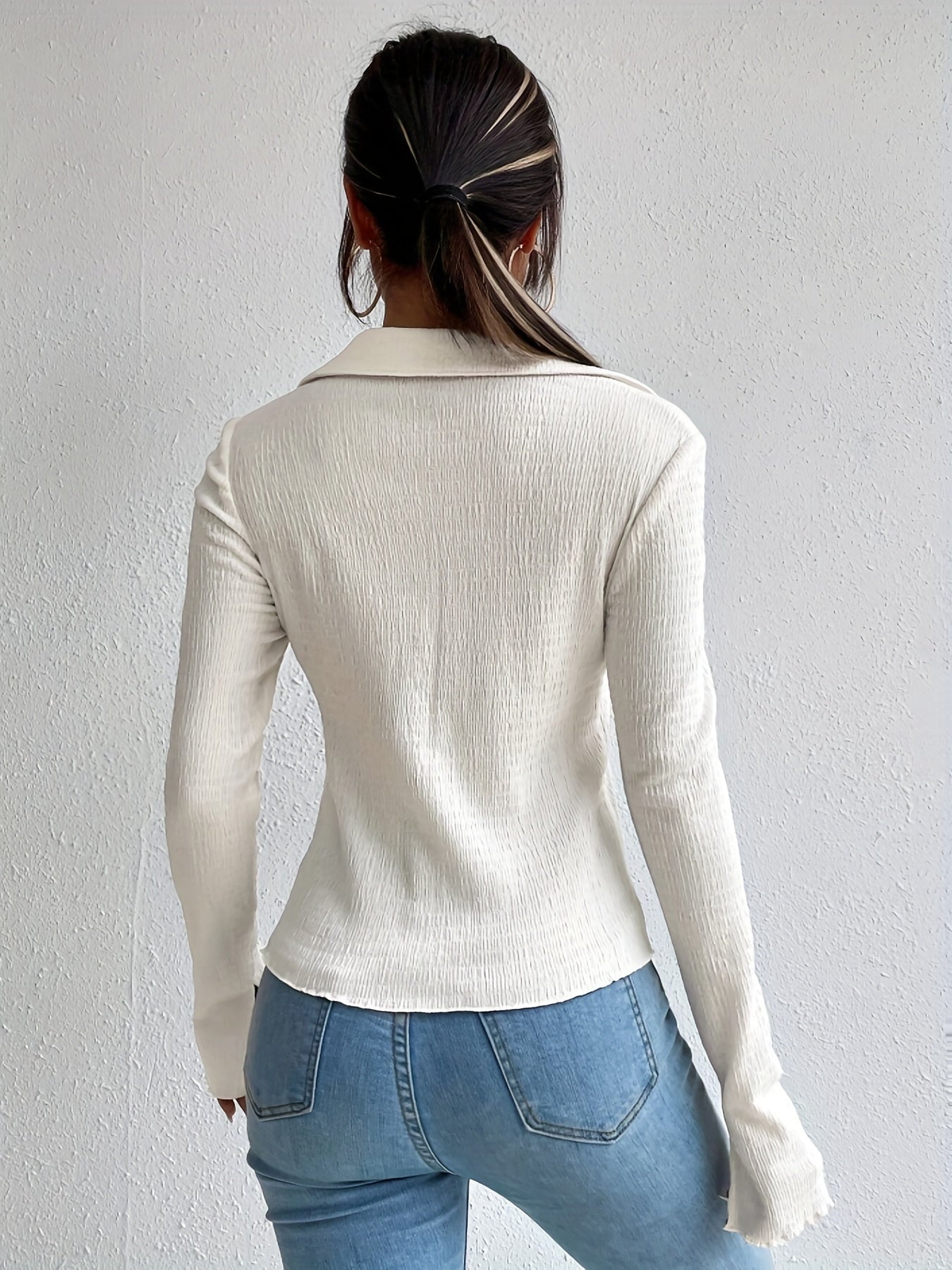 Setzen Sie ein modisches Statement mit diesem vielseitigen strukturierten Hemd. Das schlichte weiße Design und die hochwertigen Materialien machen es zu einem idealen Begleiter für verschiedenste Anlässe. Ob zu Jeans, Röcken oder Hosen – dieses Hemd ist immer eine stilvolle Wahl.